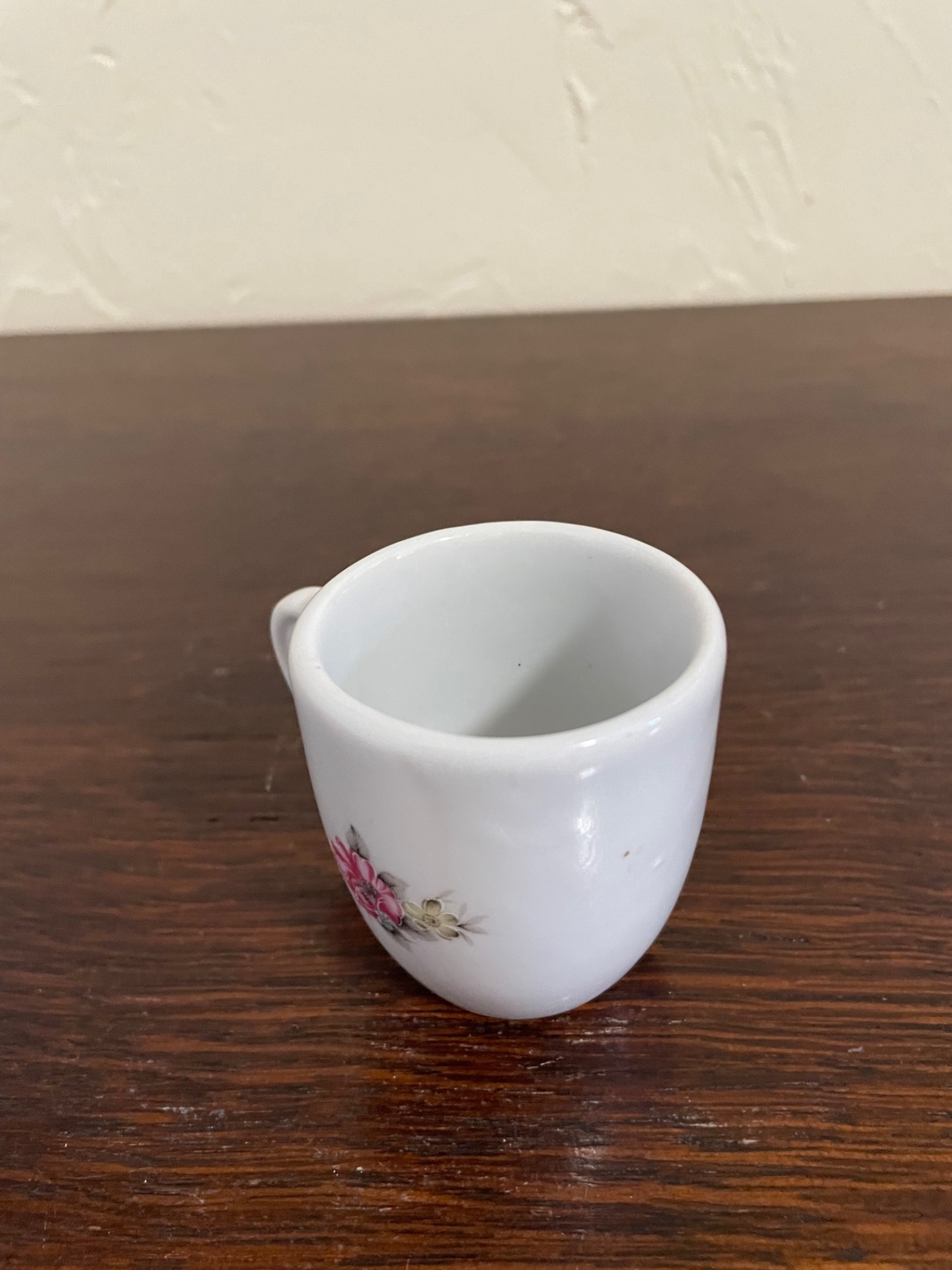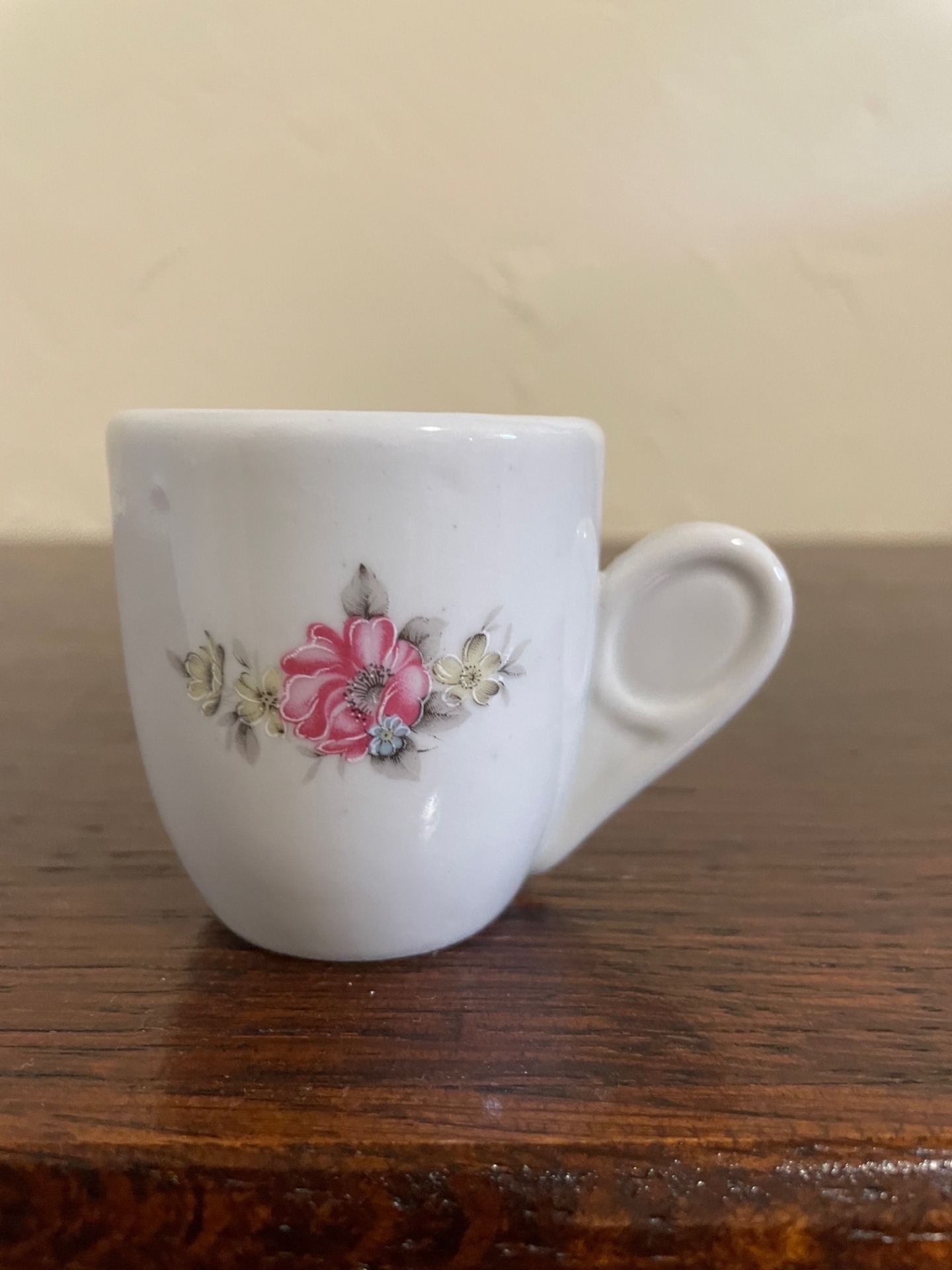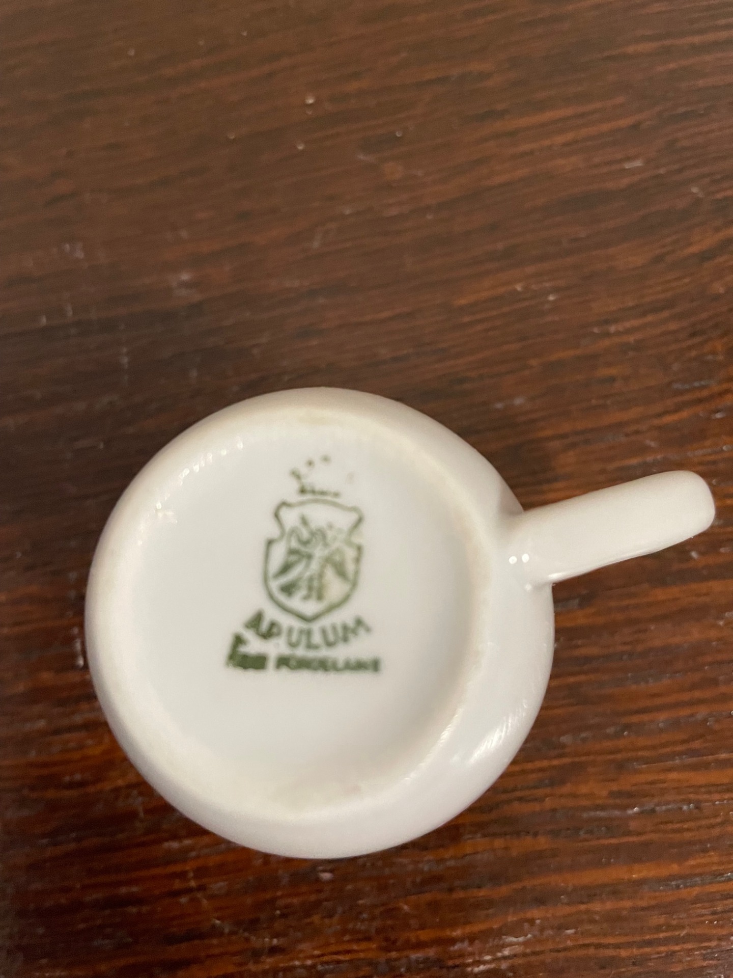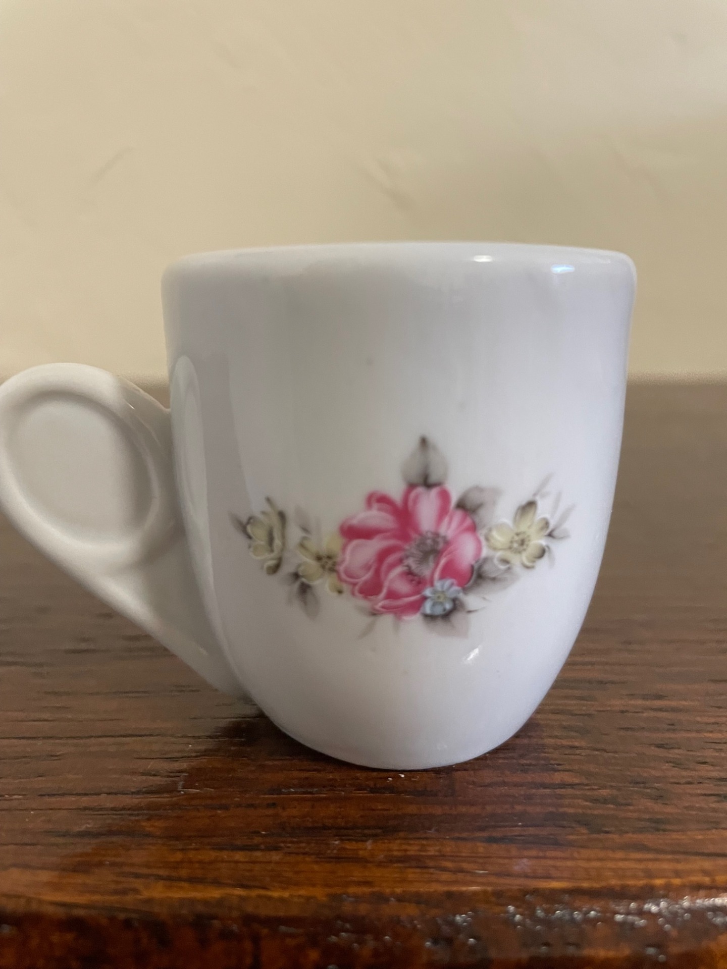Alba Iluia mokkáscsésze az Apulumtól. Izgalmassá teszi a fül-megoldása. A csésze mindkét oldalán virágmotívum látható.