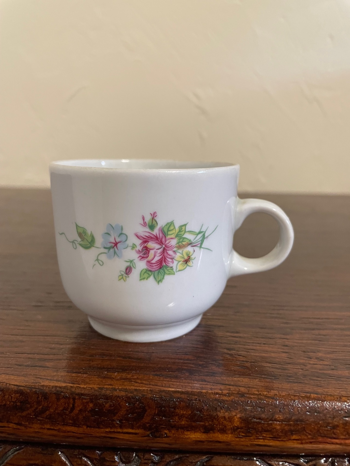 Rózsa mintás kávéscsésze. Alföldi Porcelán. Mindkét oldalán mindkét oldalán mintás.