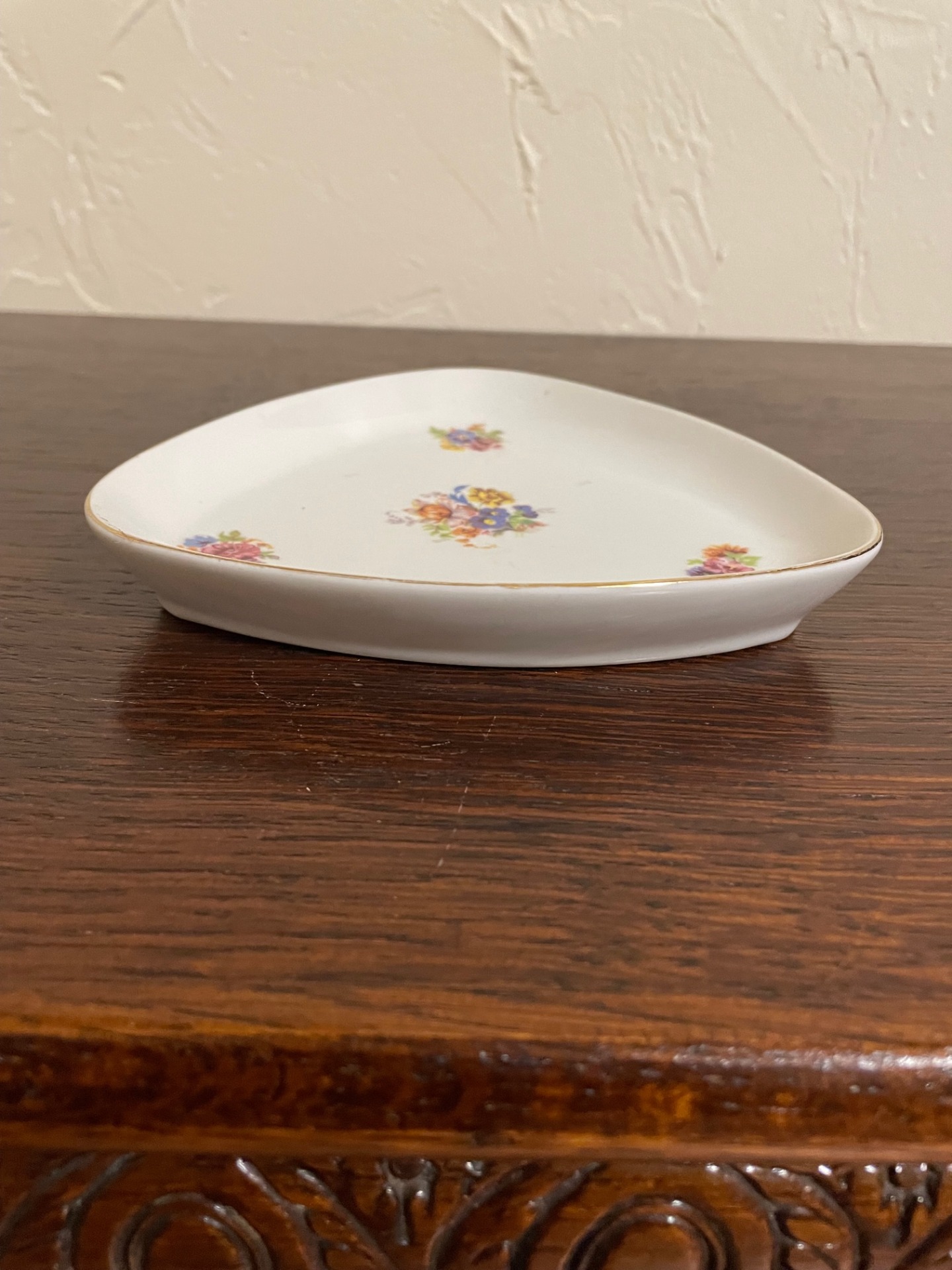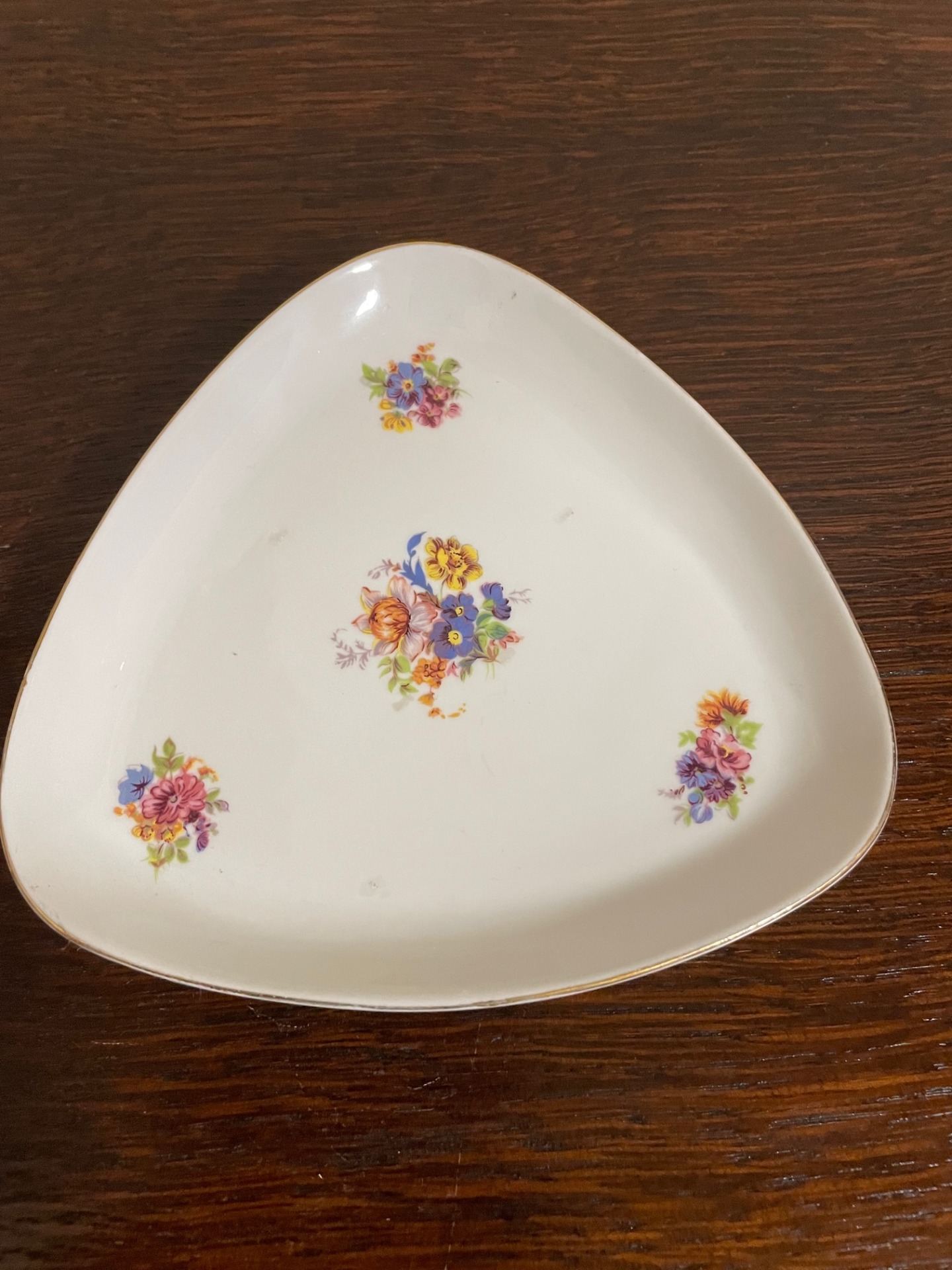 Apróvirágos, háromszög alakú hamutál, Hollóházáról - a fotókon látható állapotban, mely korának megfelelő.