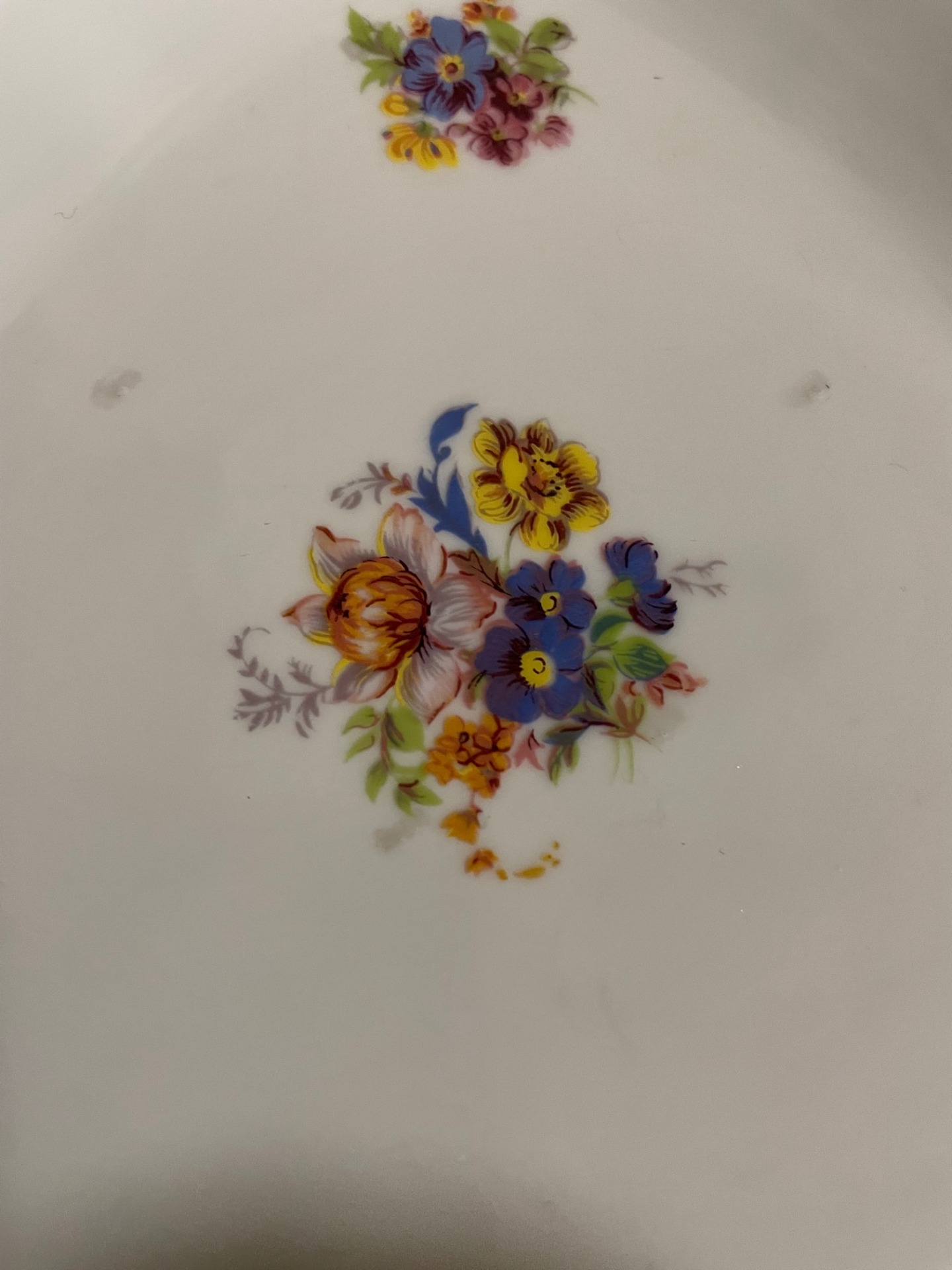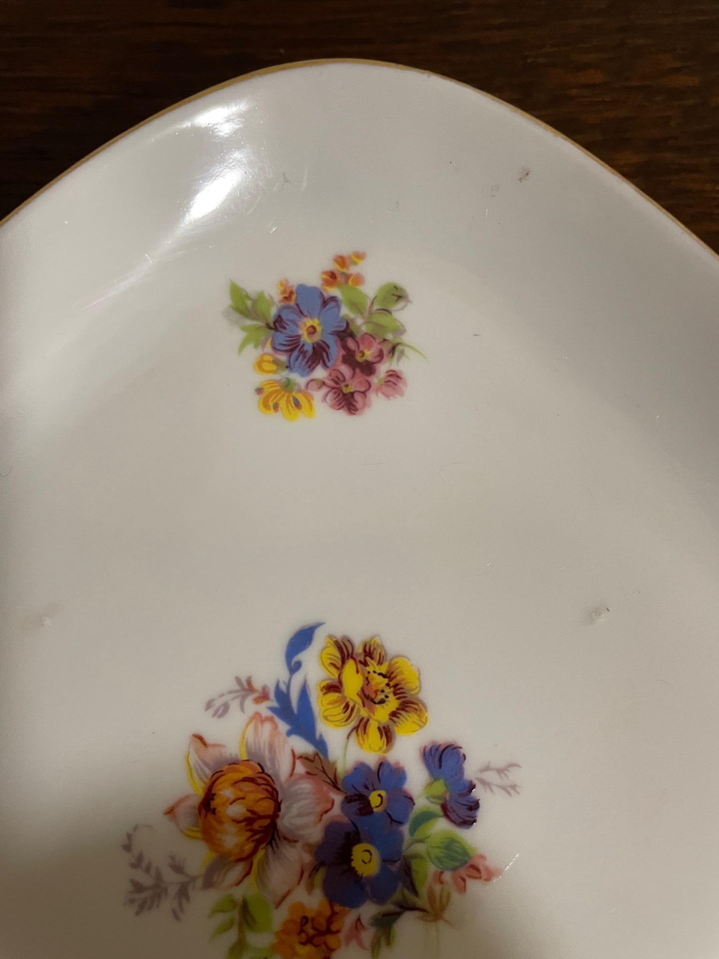 Érdekessége, hogy a hamutál közepén lévő virágcsokorból egy-egy kisebb csokor jelenik meg a háromszögek szögeiben, és mindhárom más virágot ábrázol a csokorból.