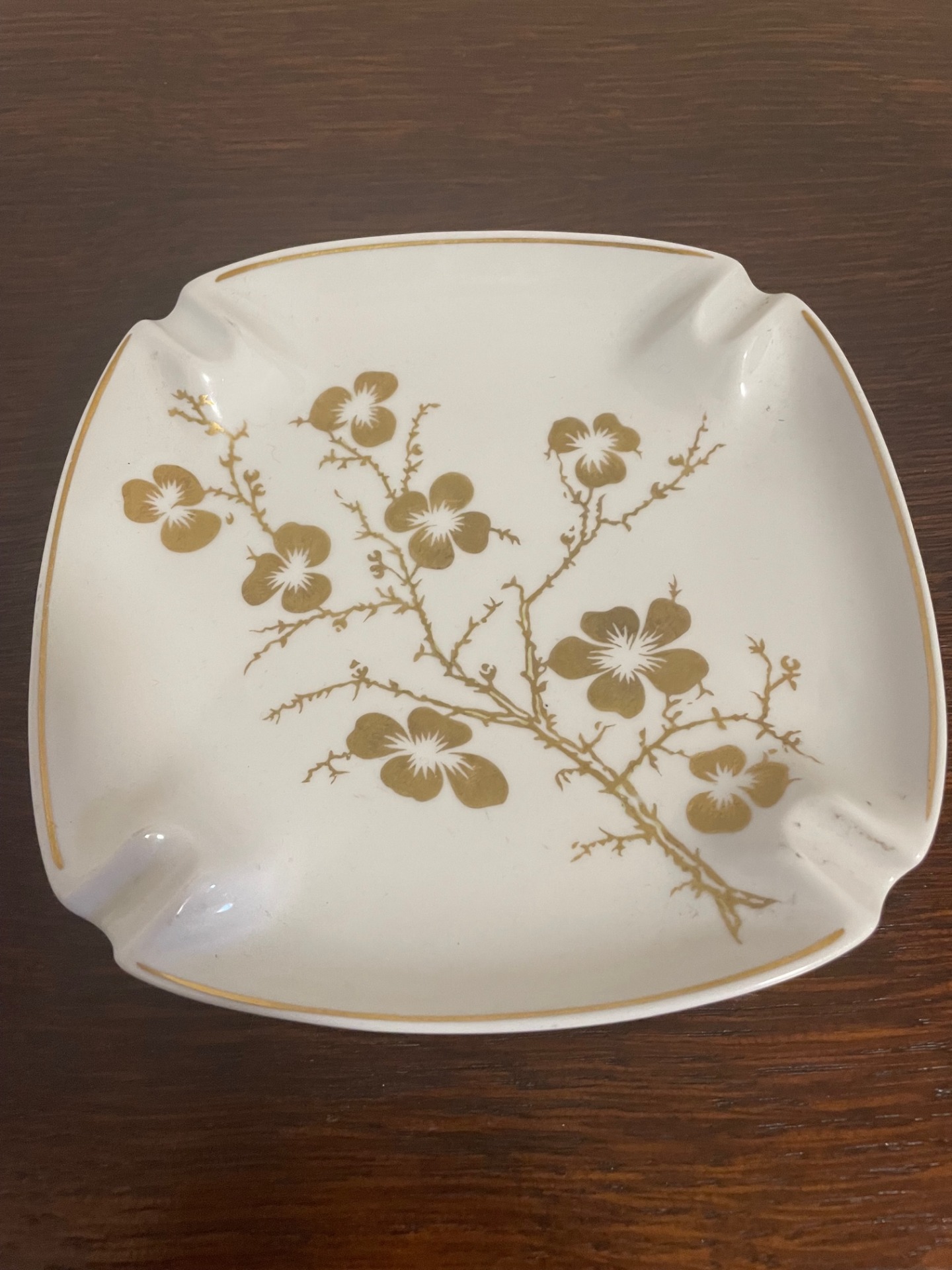 Arany virágos hamutál, arany szegéllyel ellátva, Hollóházáról, az 50 - es évekből.