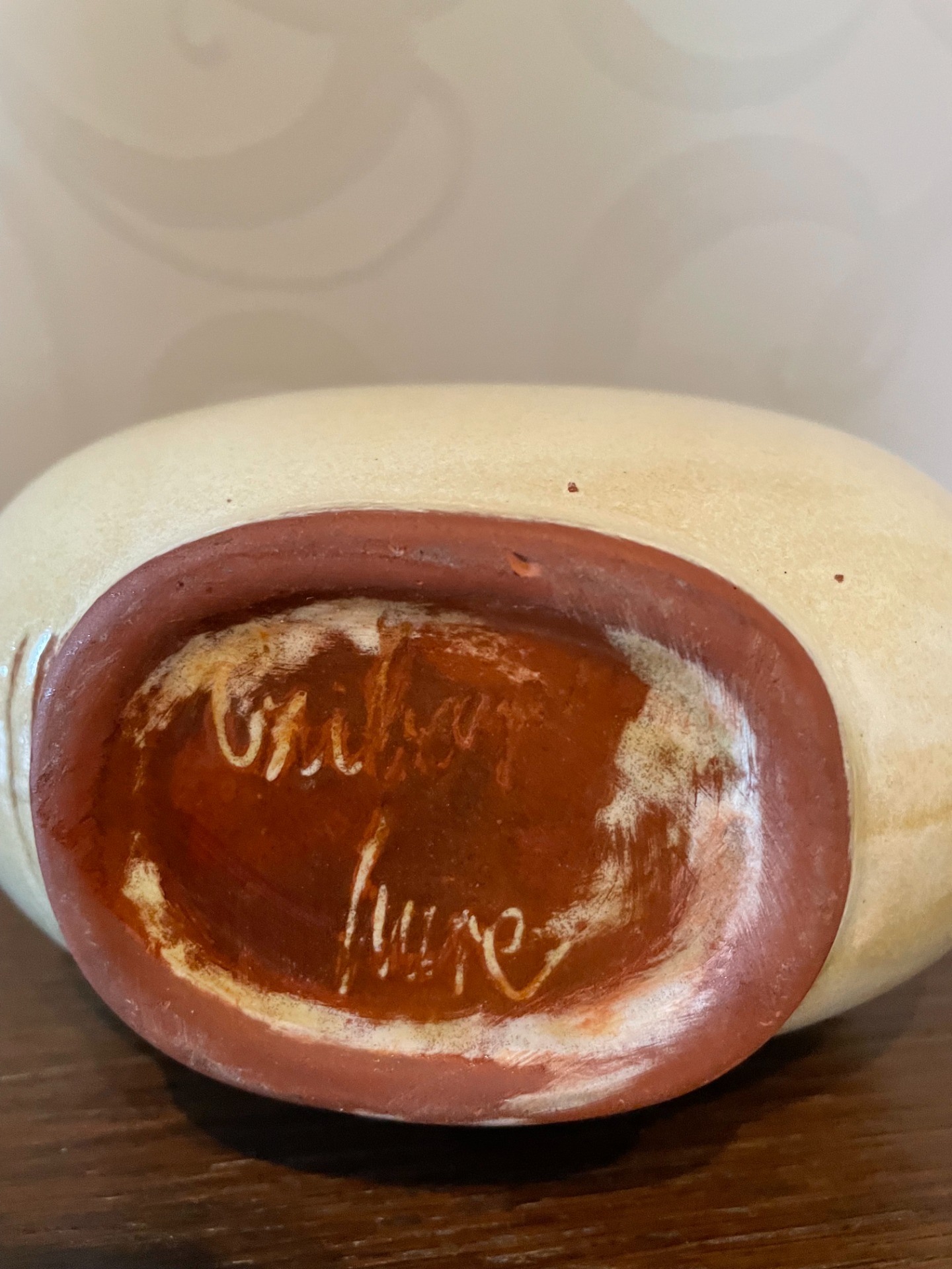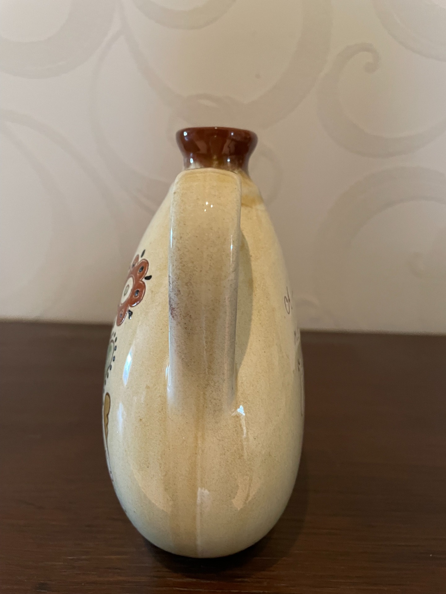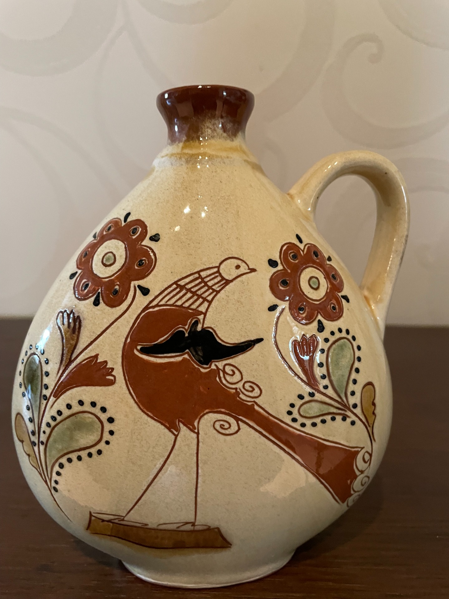 Czibor Imre hasas butellája, egyik oldalán páva motívum, másik oldalán felirat: