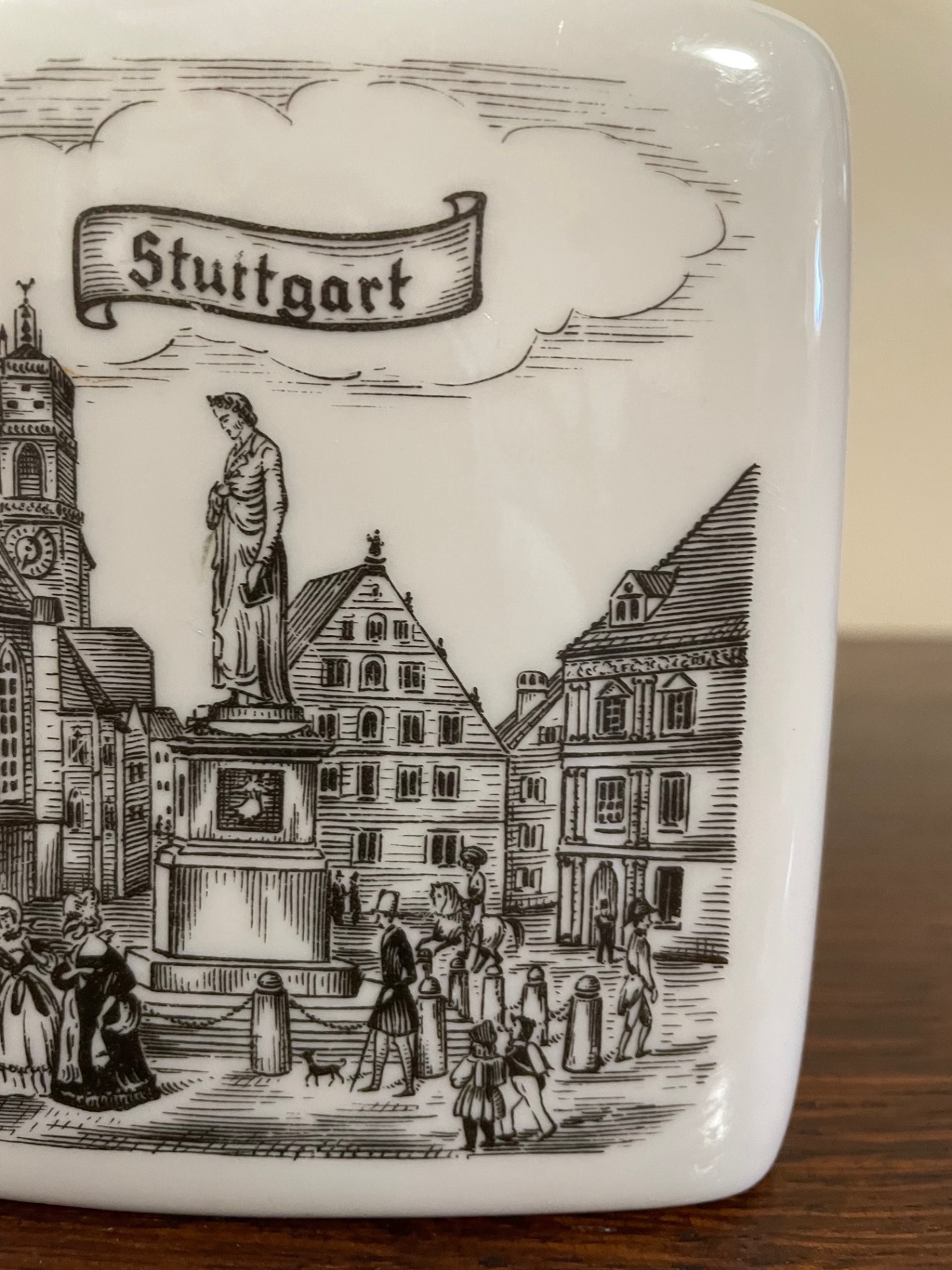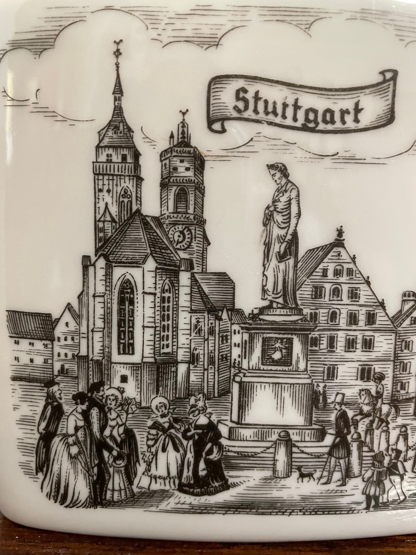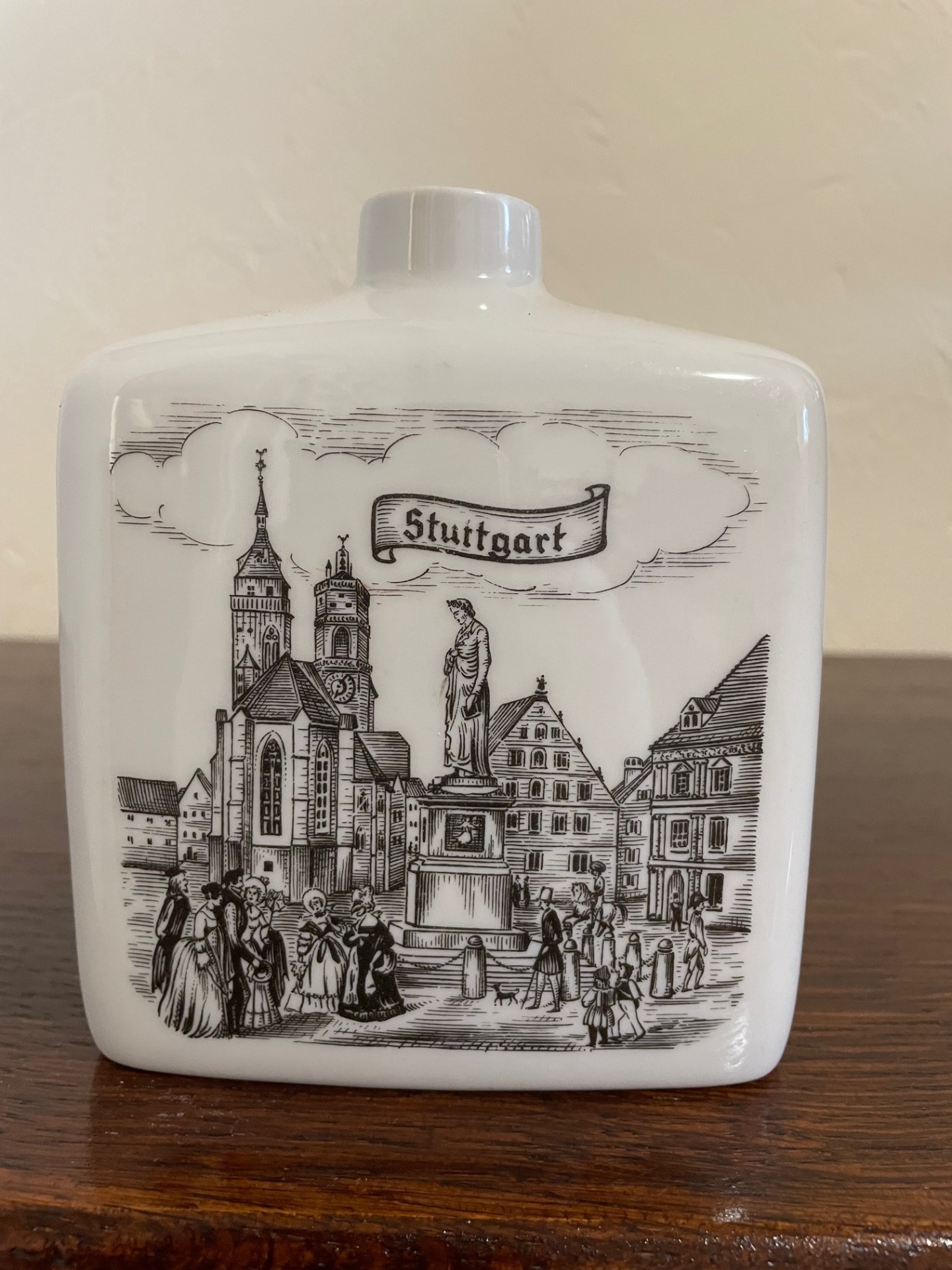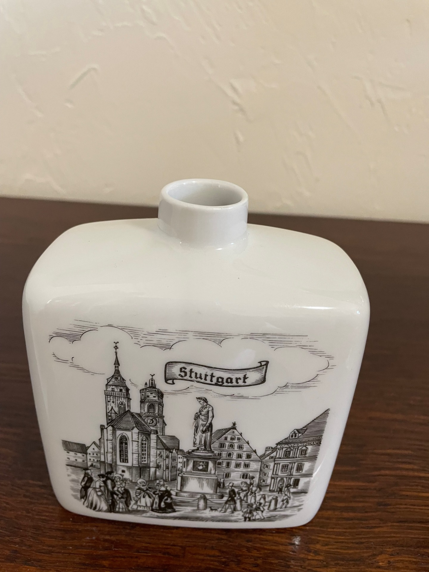 DP porcelán díszbutella, korabeli, Stuttgarti utcajelenettel. Kupak nélkül.