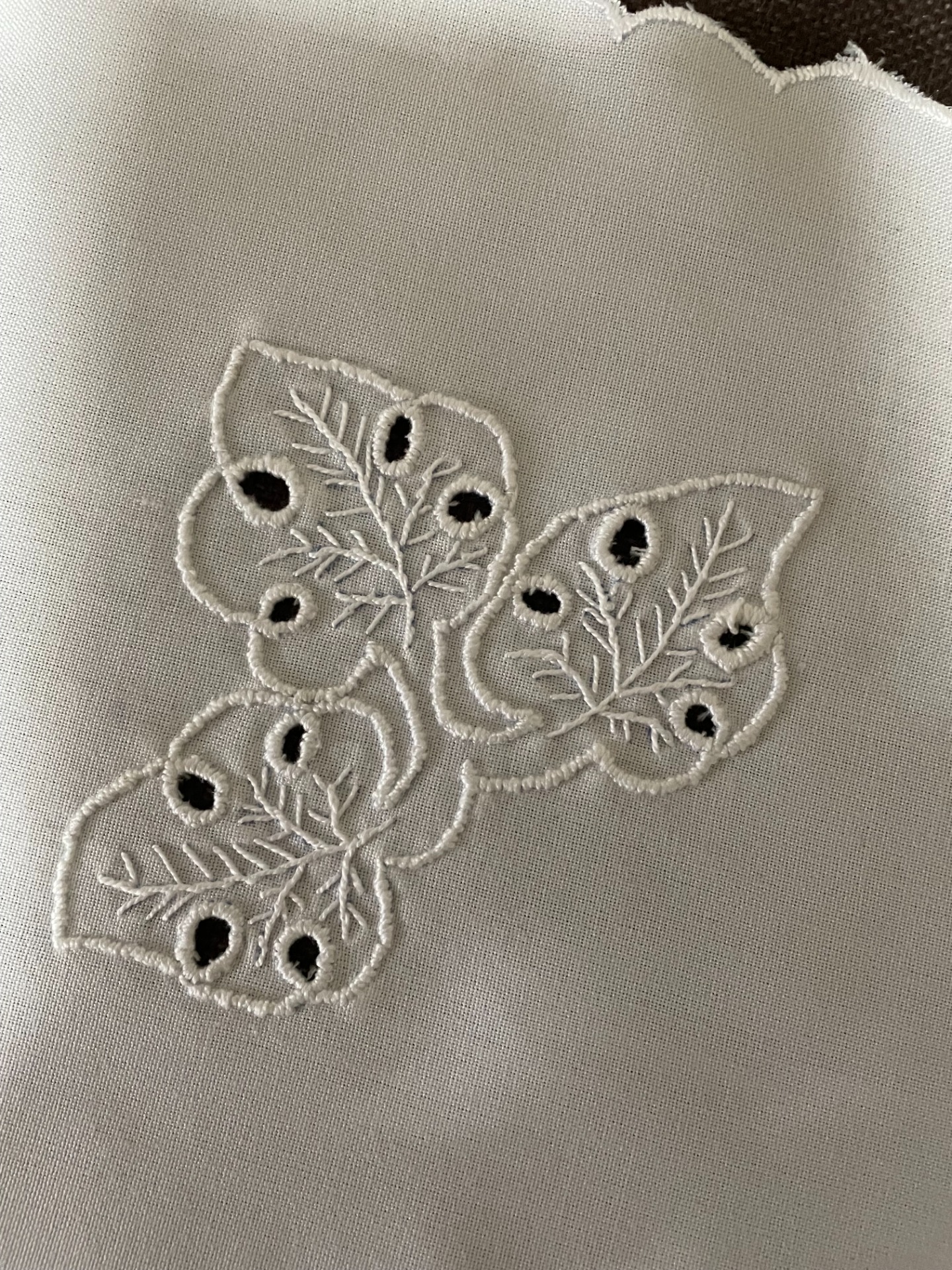 Alkalmazott technika: száröltés, laposöltés, lukhímzés.