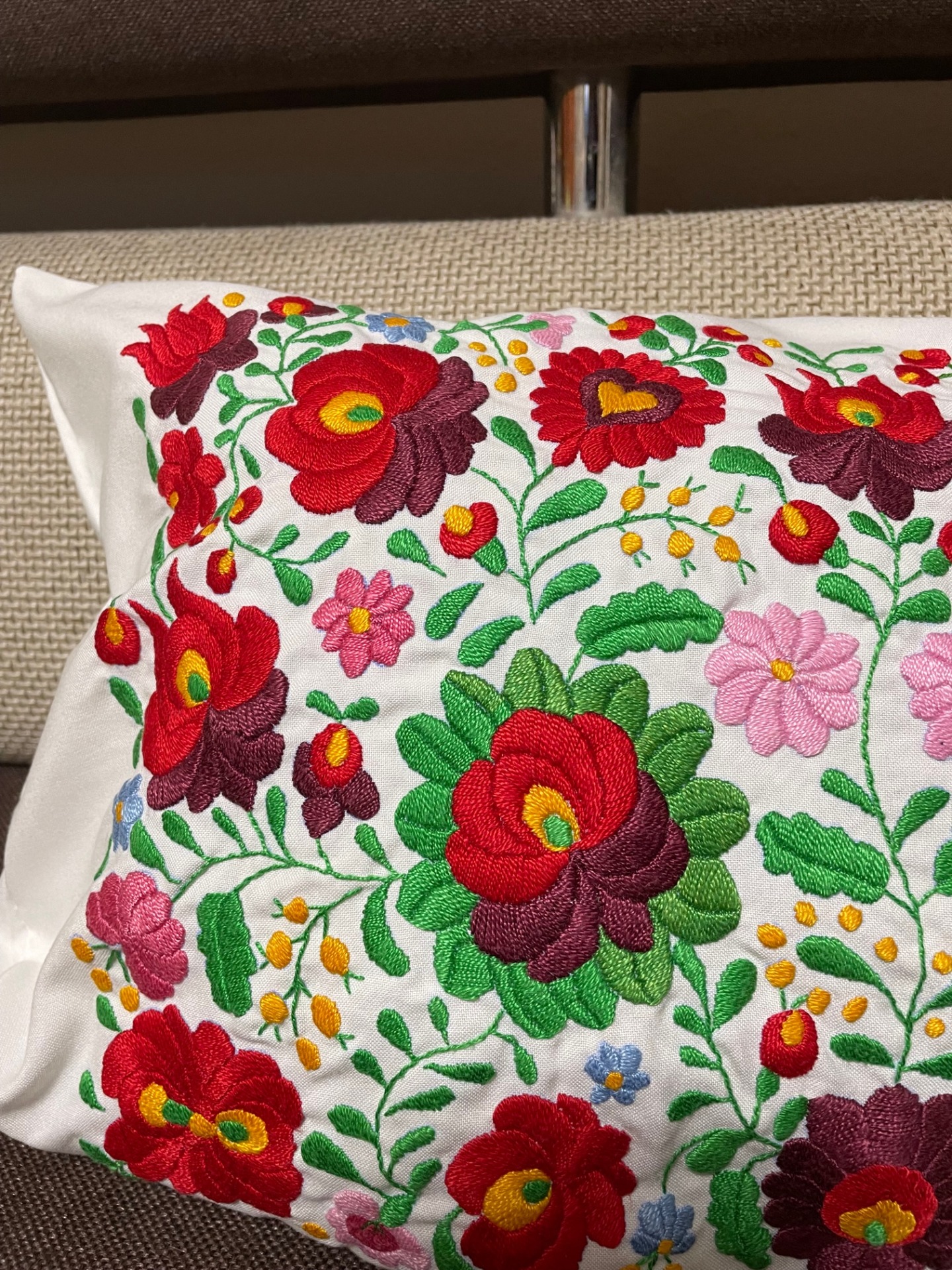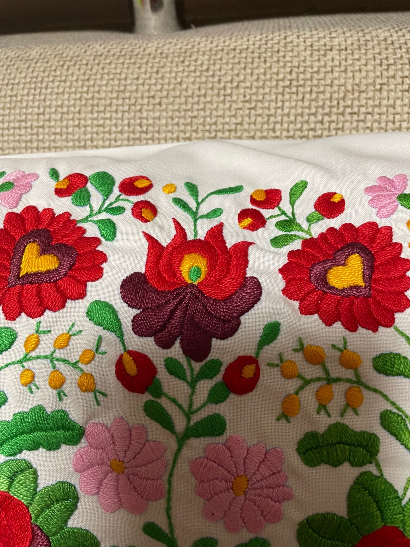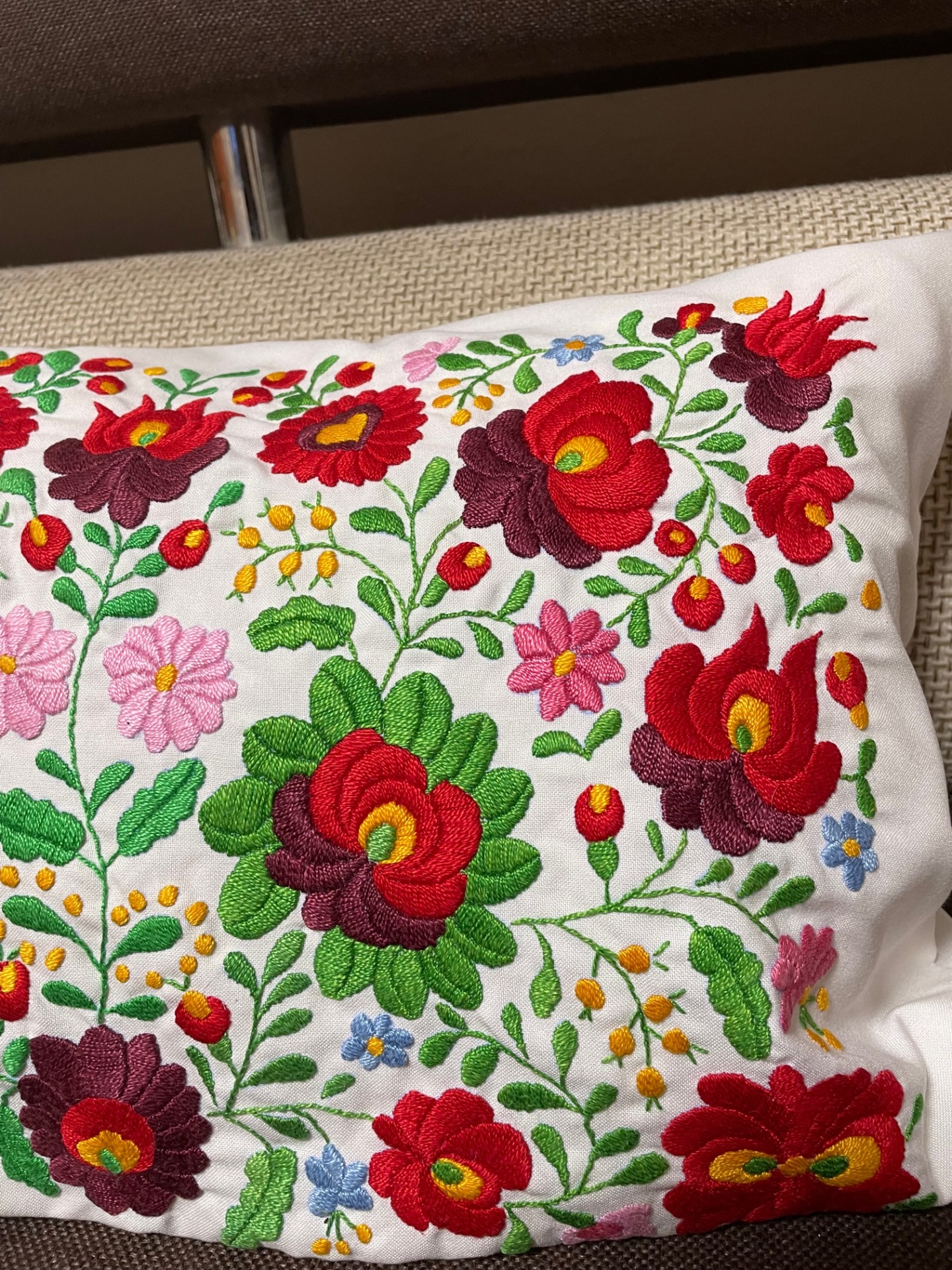 Kézzel hímzett díszpárna huzat - matyó mintasorral.