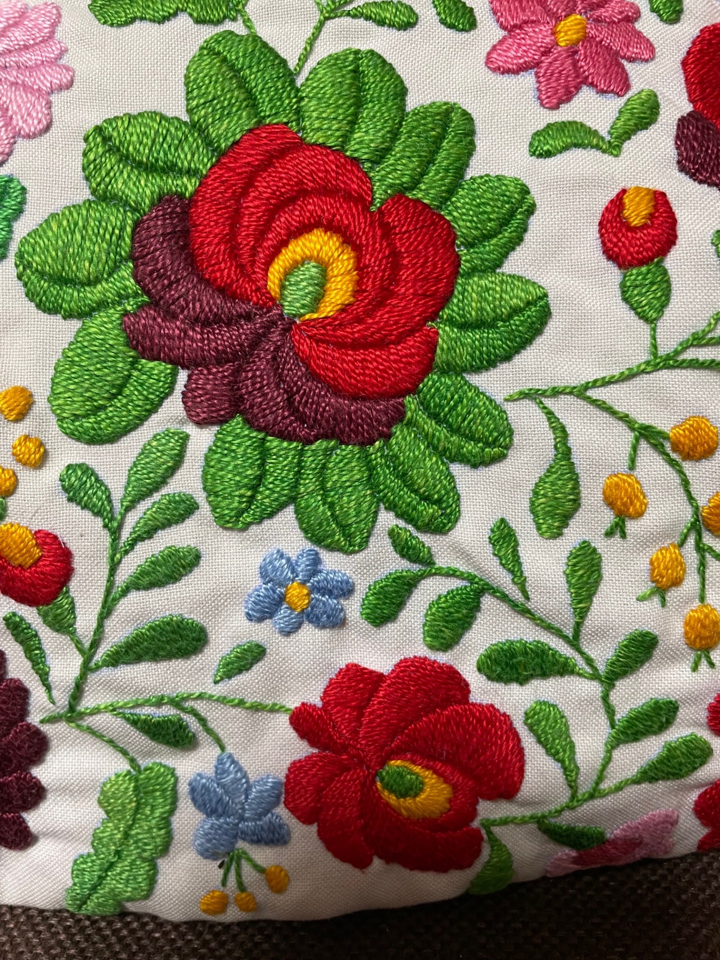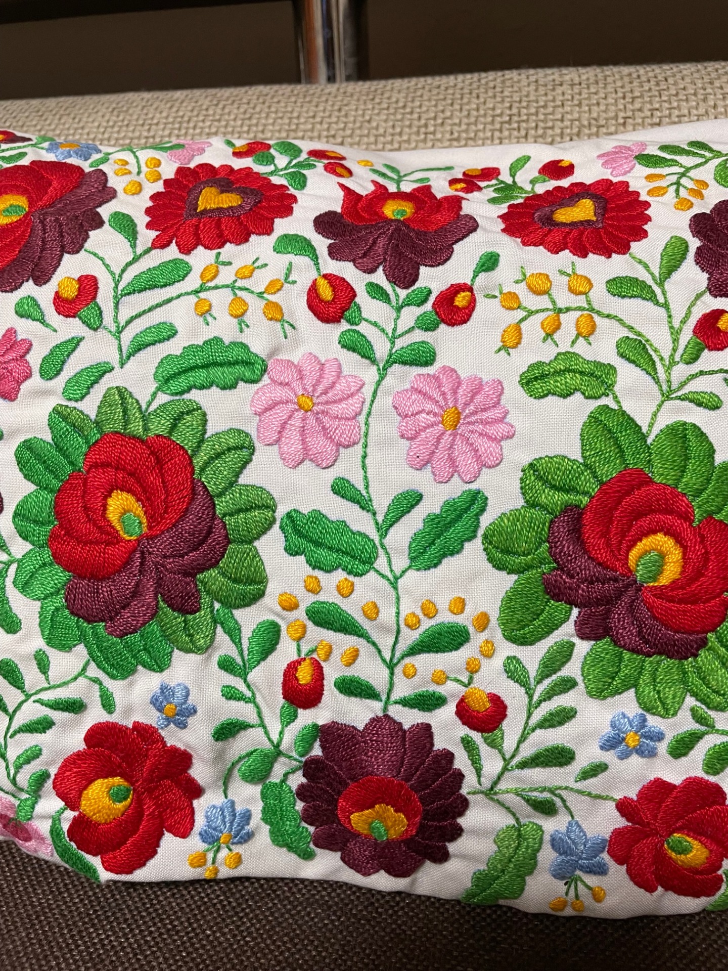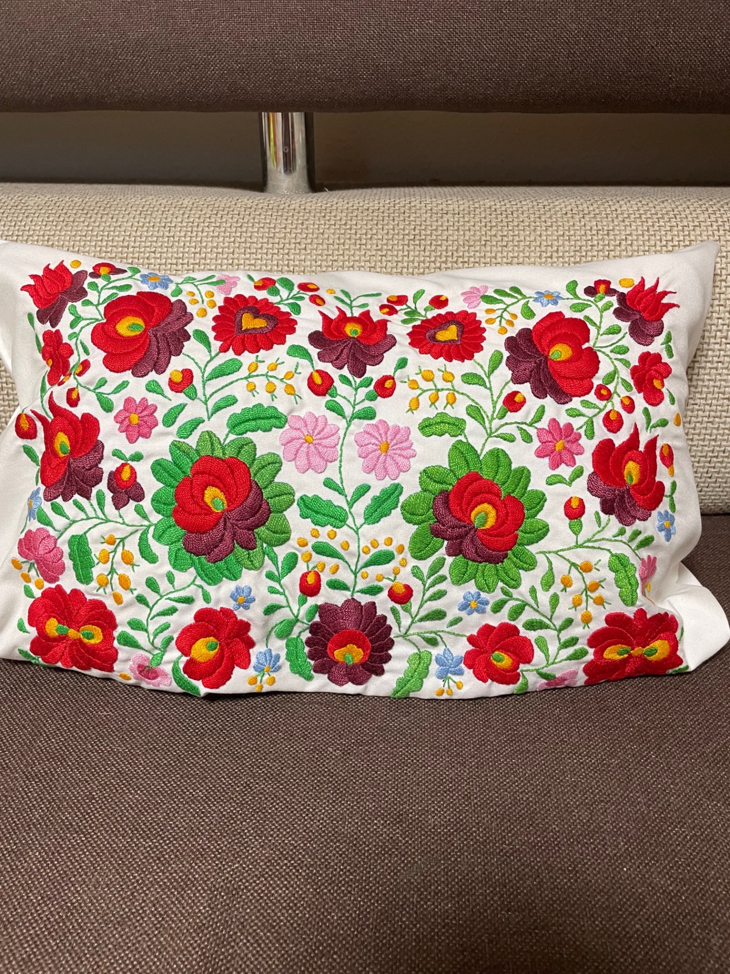 Kézzel hímzett díszpárna huzat - matyó mintasorral.
