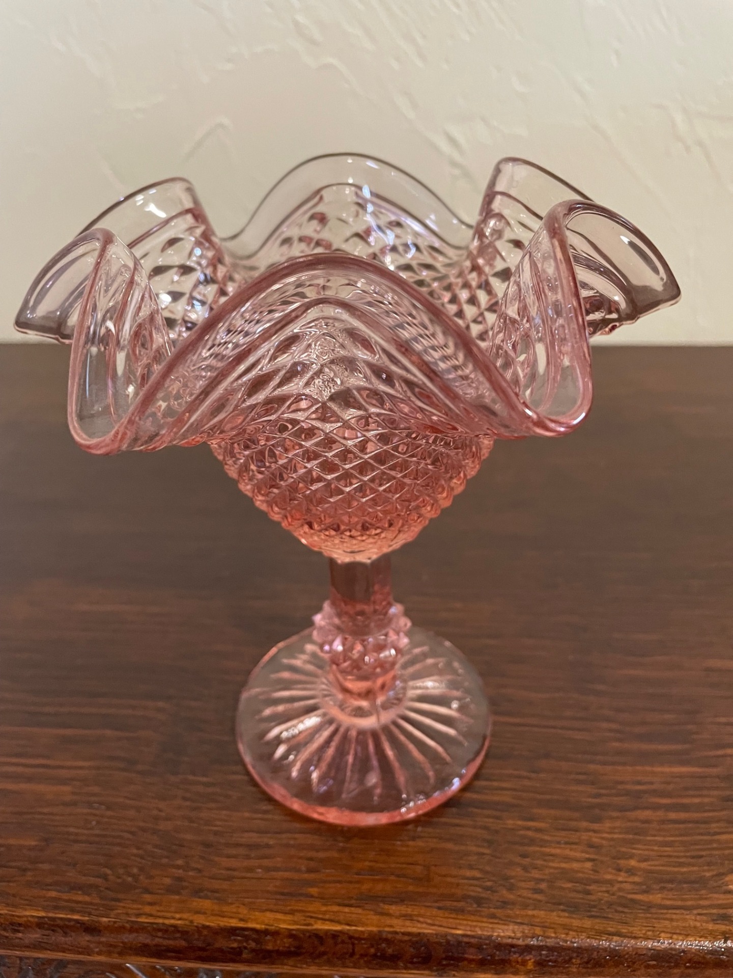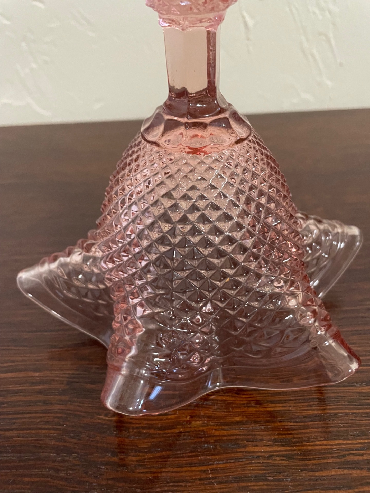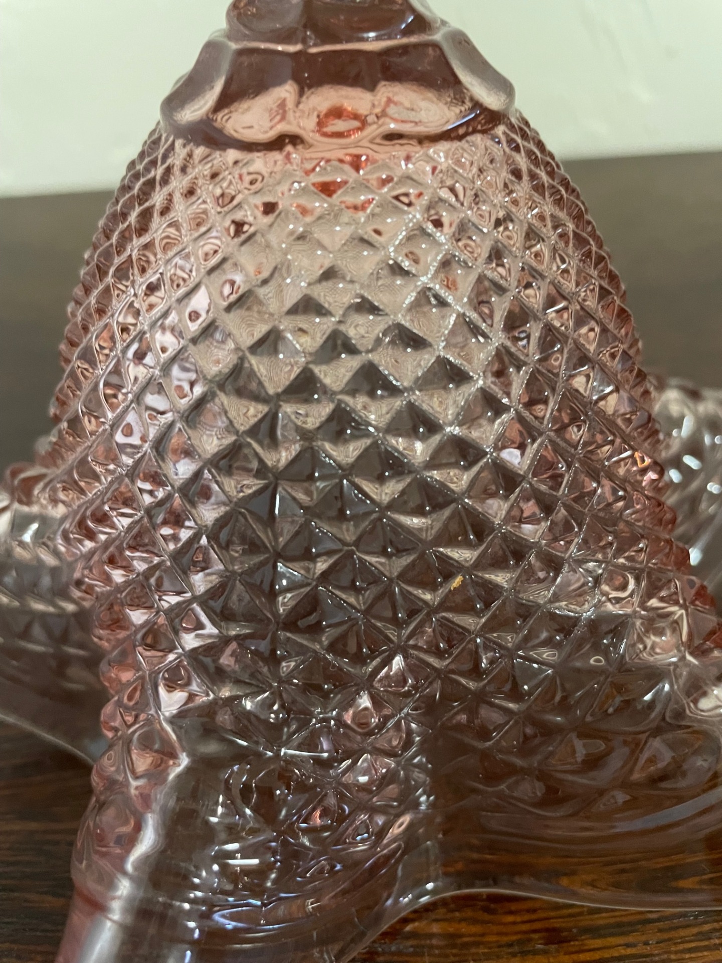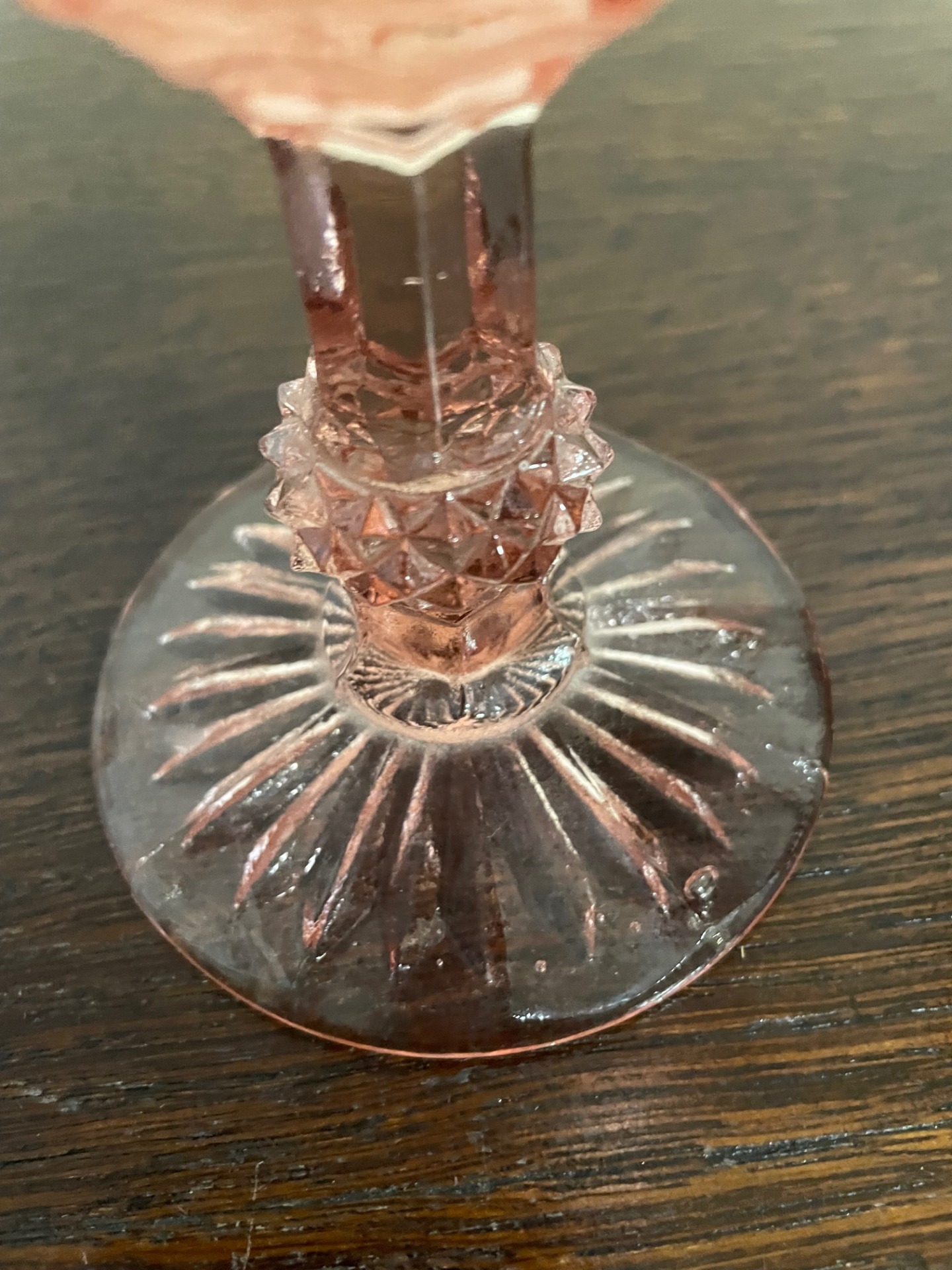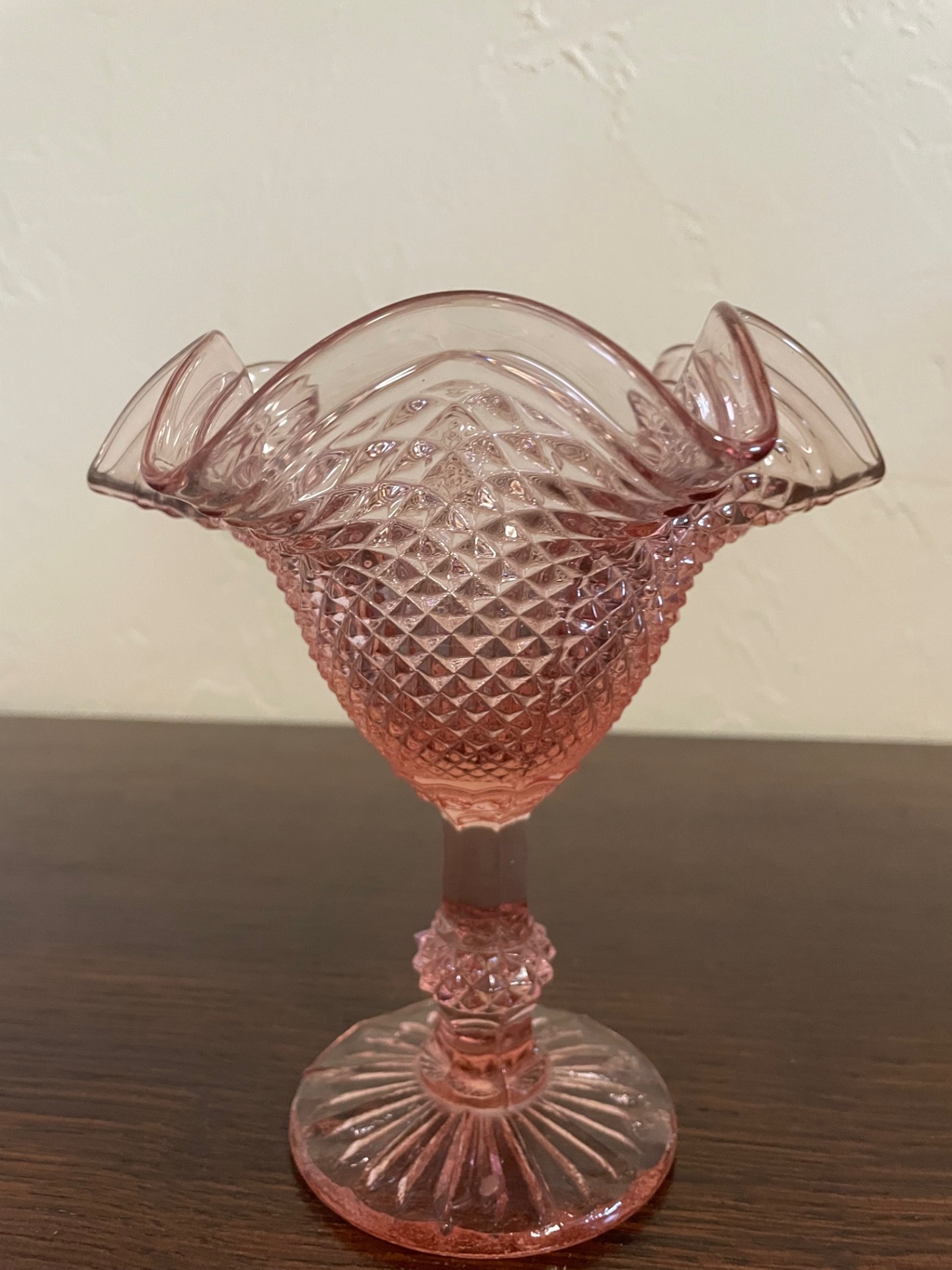 Liliom formájú, géppel csiszolt, barack színű kristály kehely.