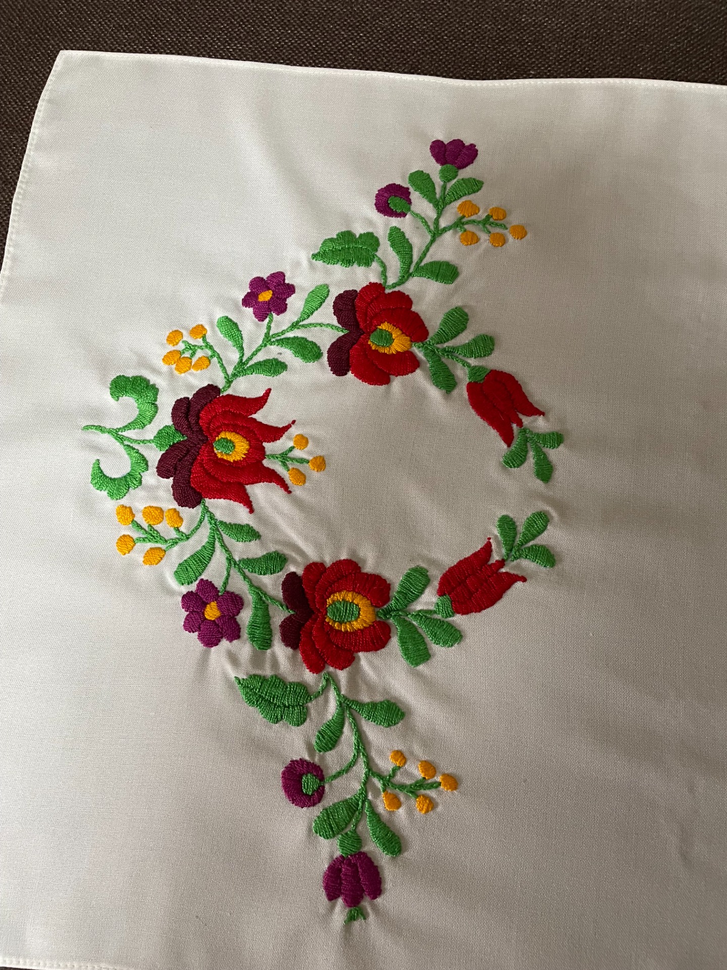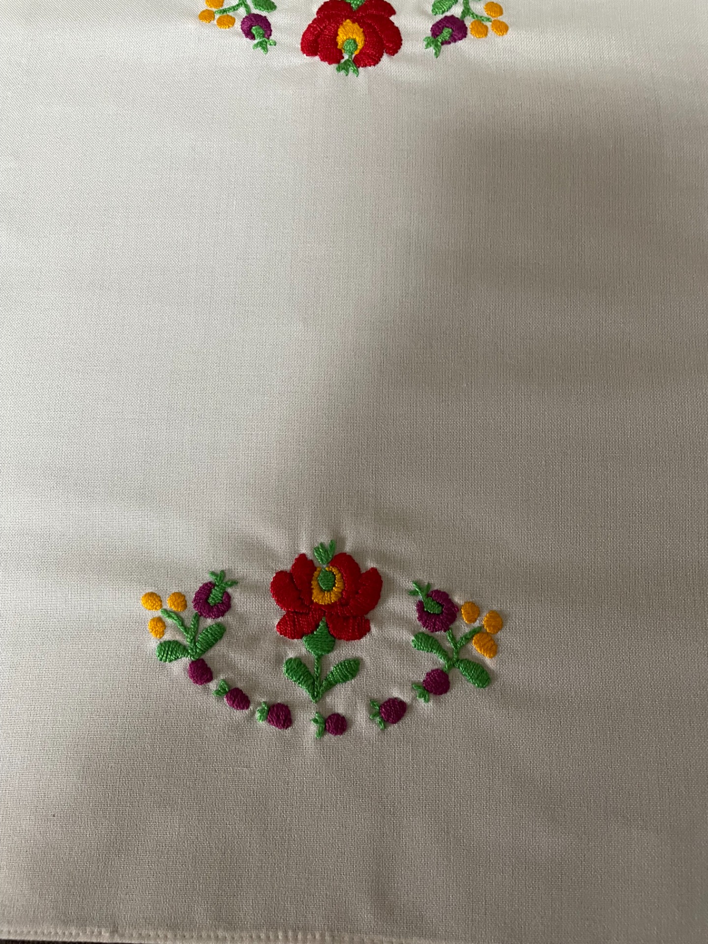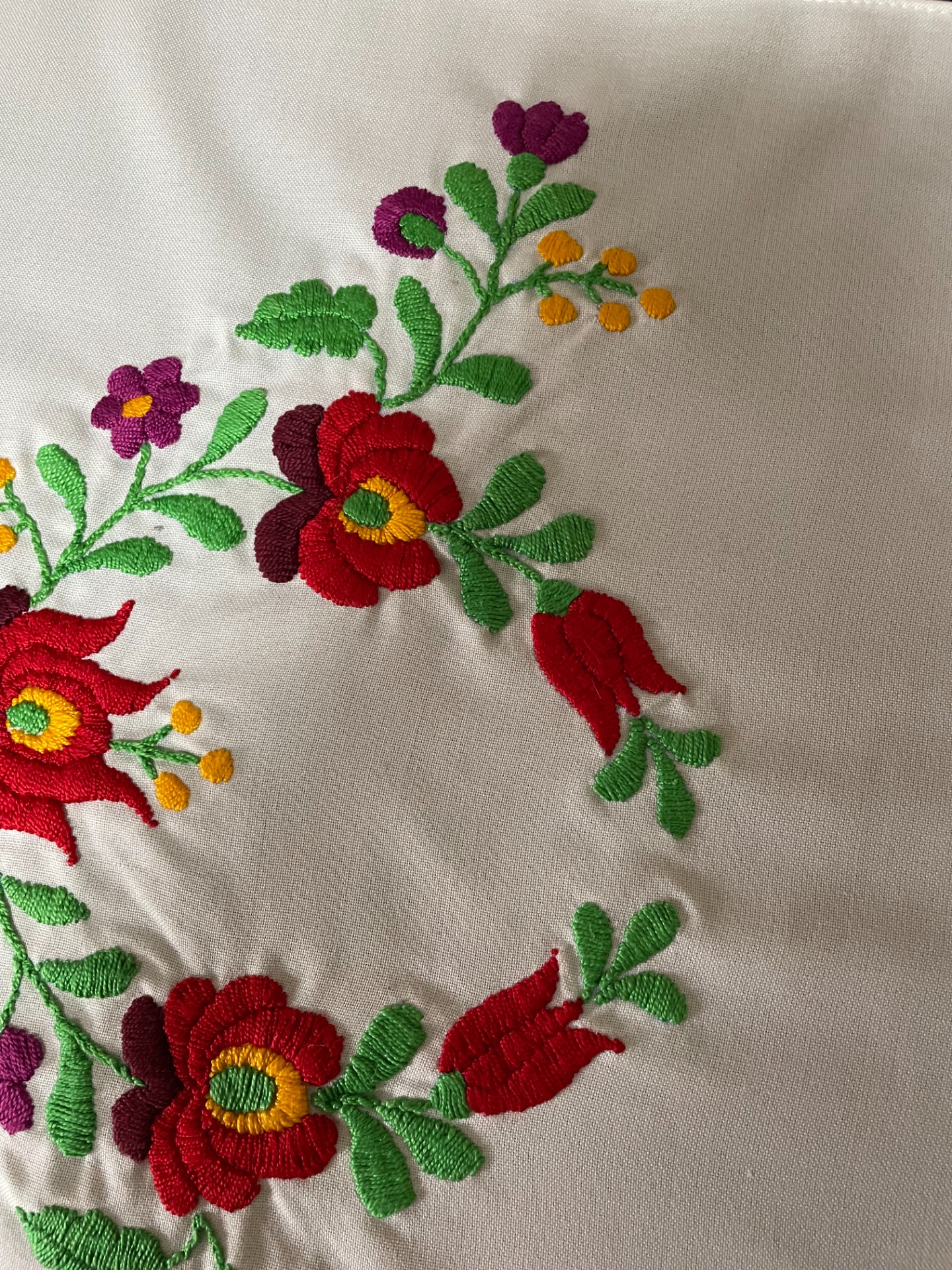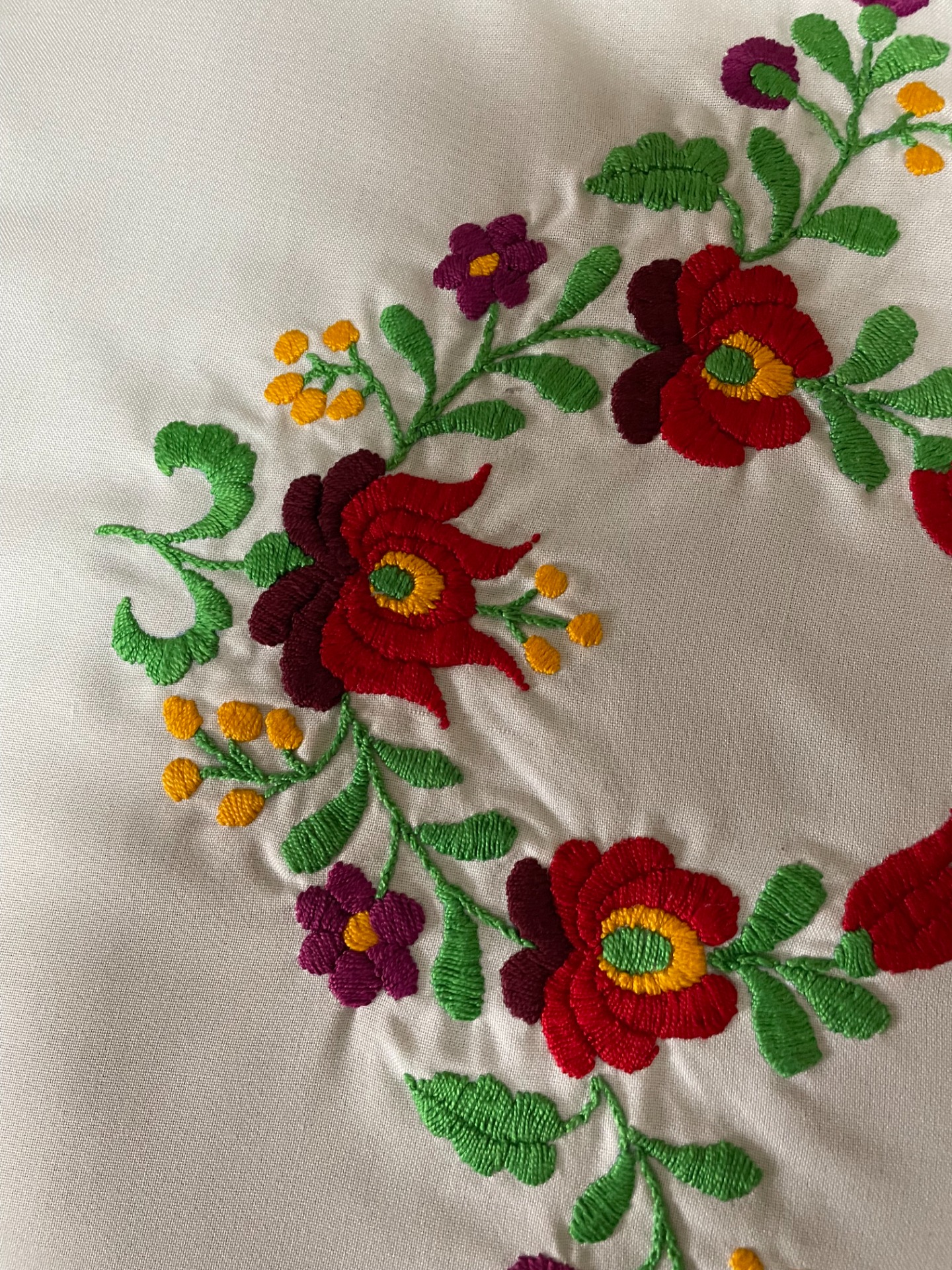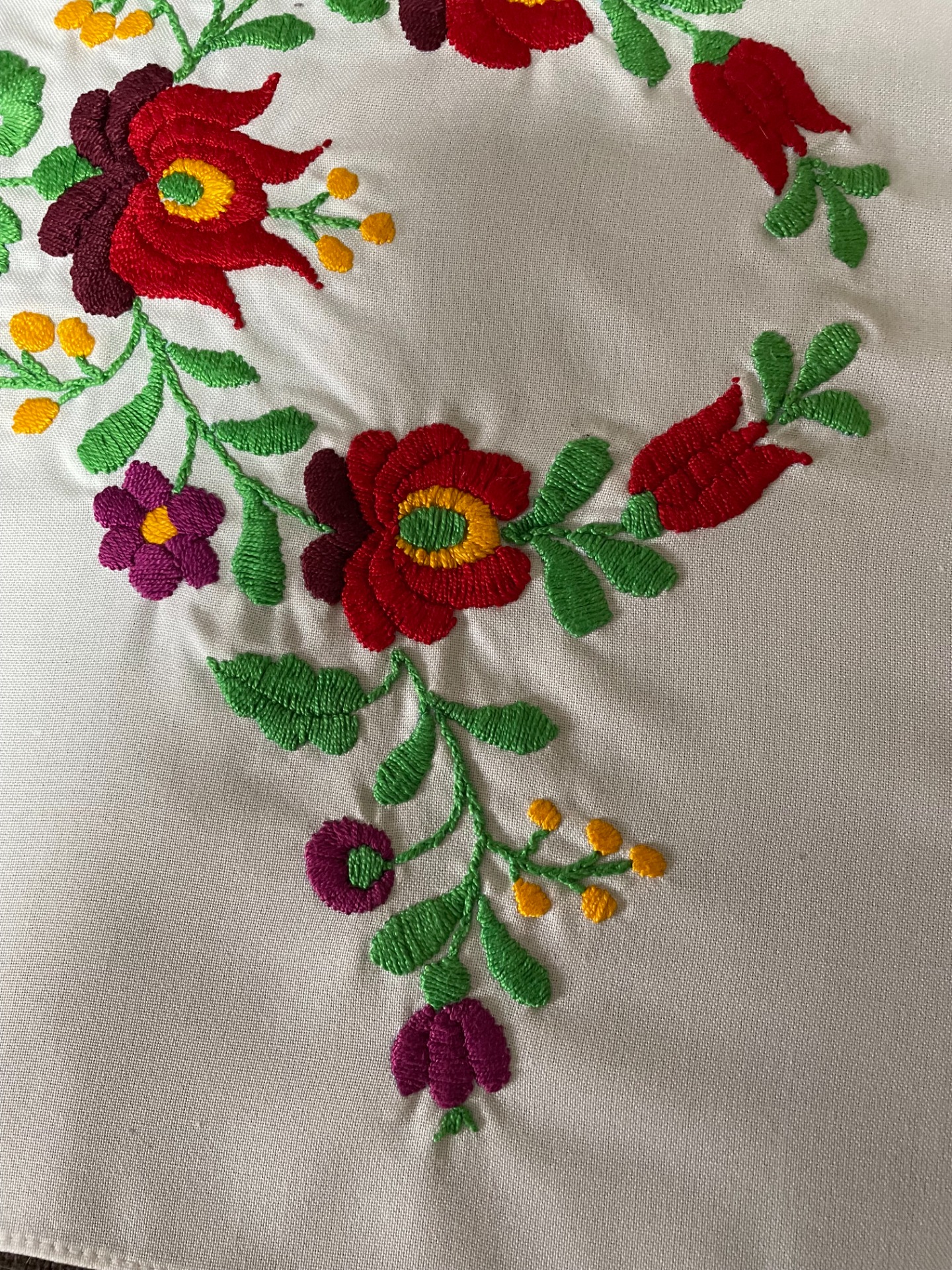 Matyó terítő - gömbbe forduló virágokkal