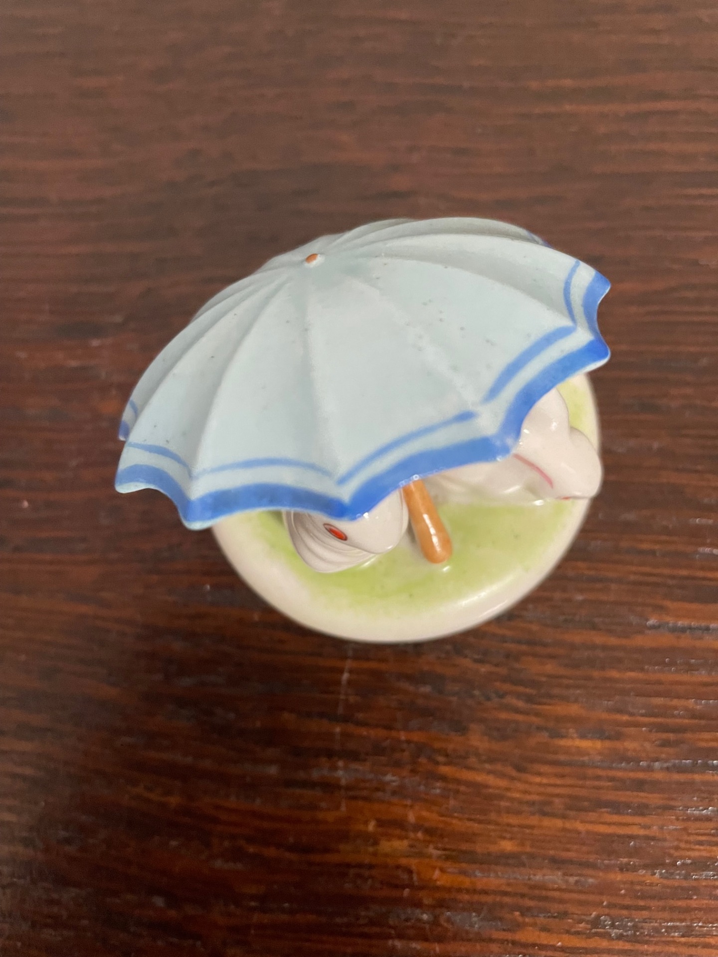Szemük piros, az esernyő saját színének sötétebb árnyalatával szegélyezett. Különlegessége: az esernyő alatti nyuszifülek is gyönyörűen kerültek kidolgozásra.