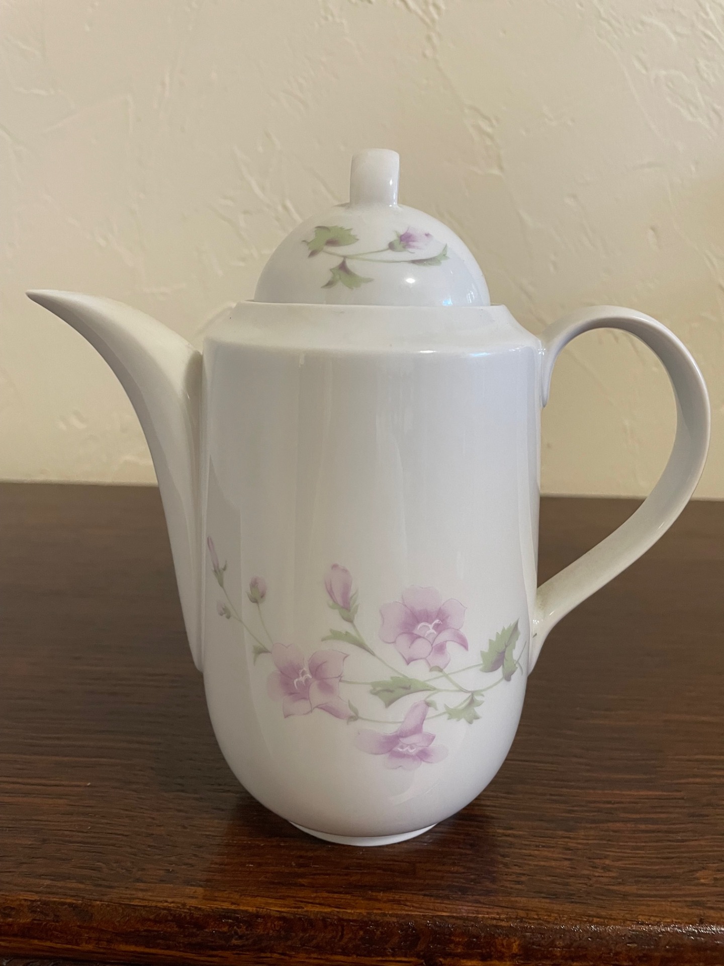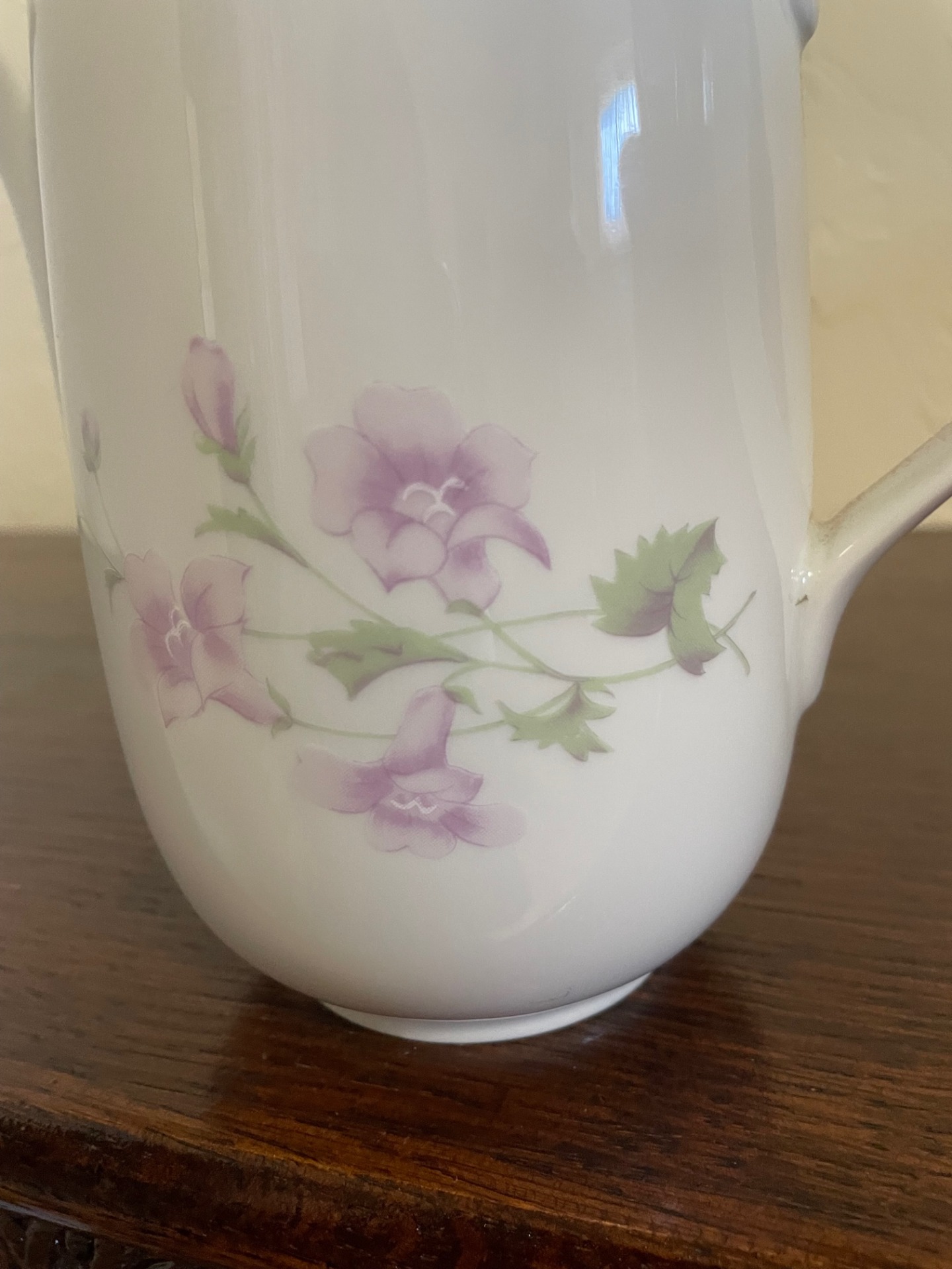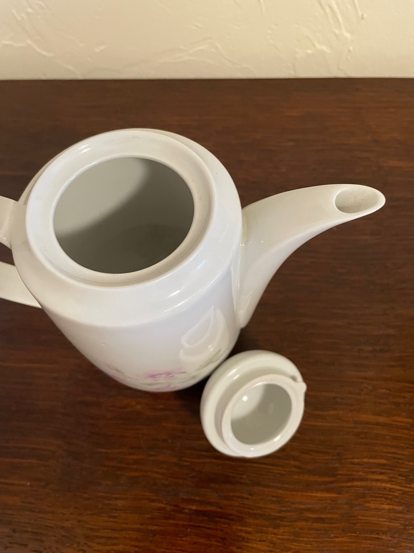Kecses, orchidea mintás kávés kanna az Alföldi Porcelángyár 1970-es terméke.