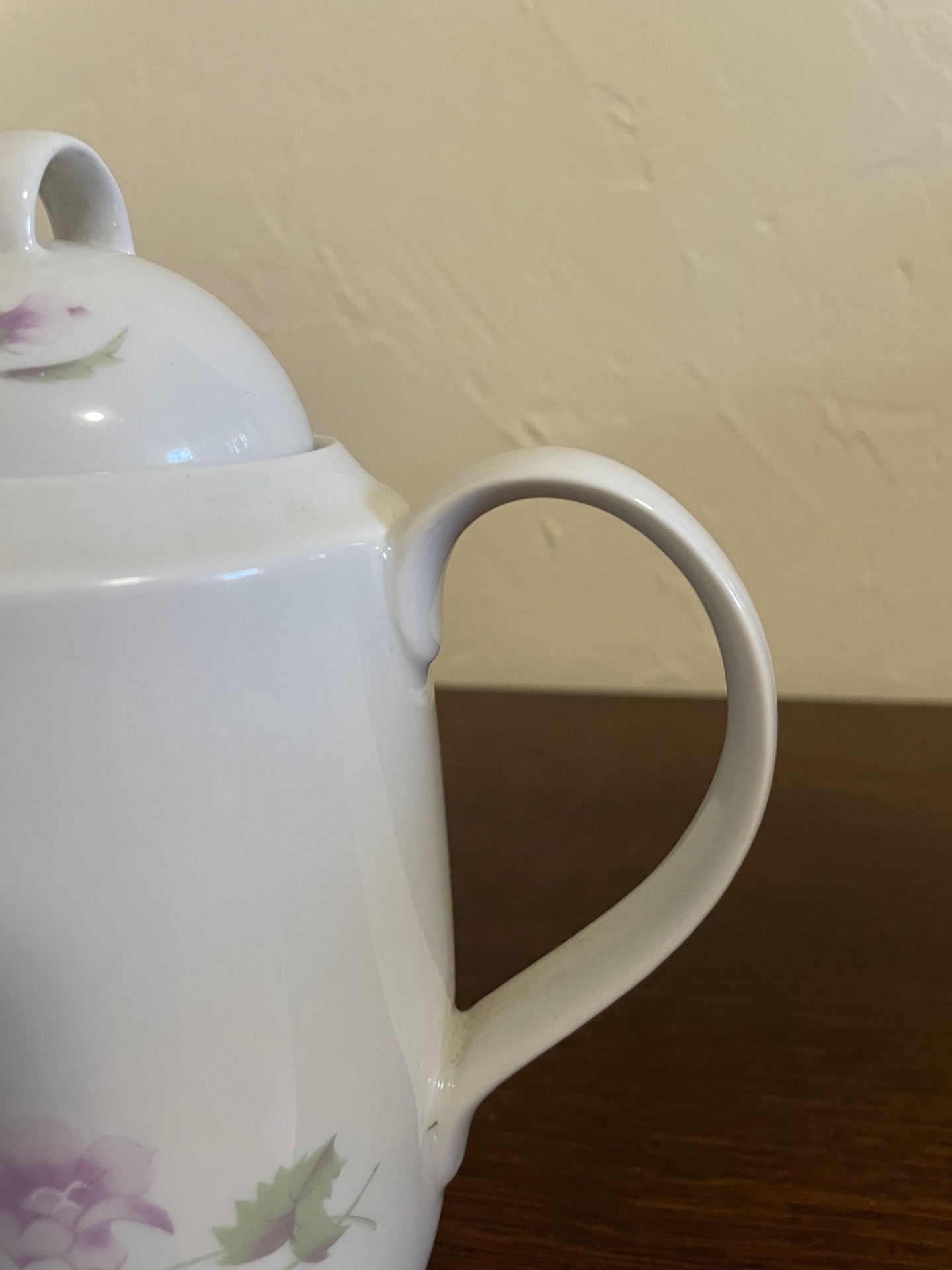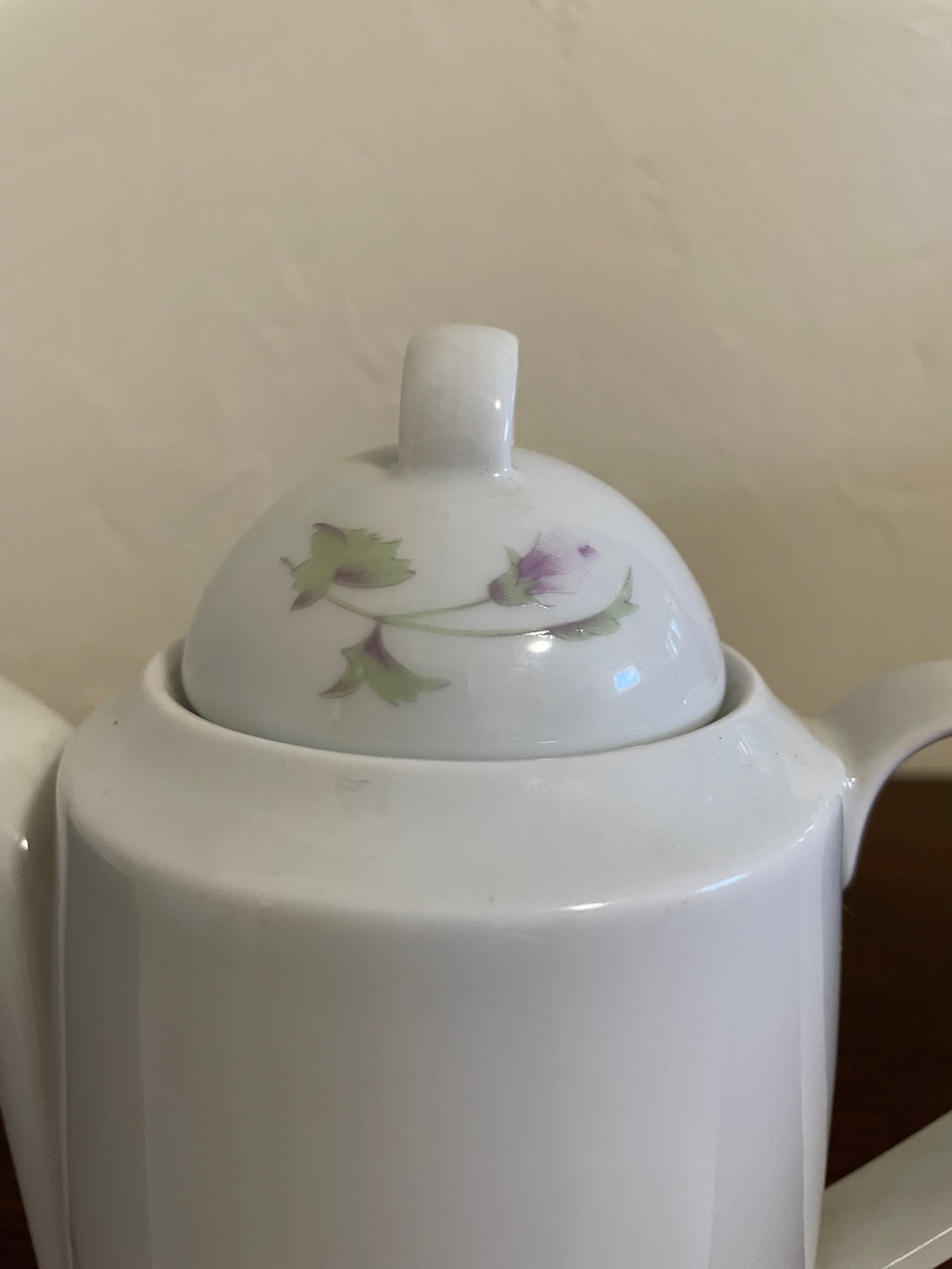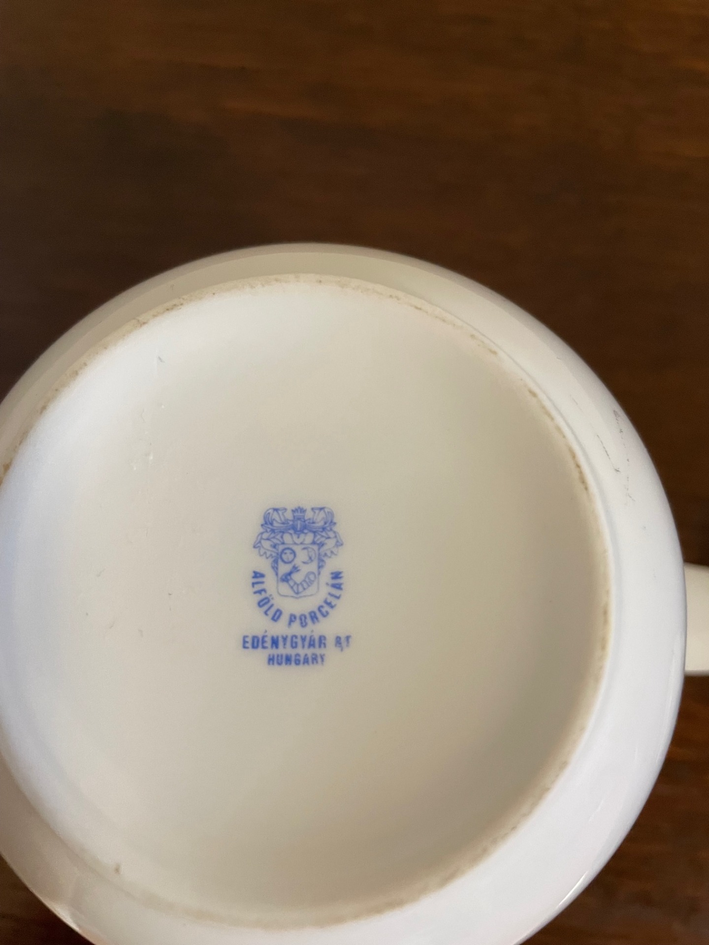Kecses, orchidea mintás kávés kanna az Alföldi Porcelángyár 1970-es terméke.