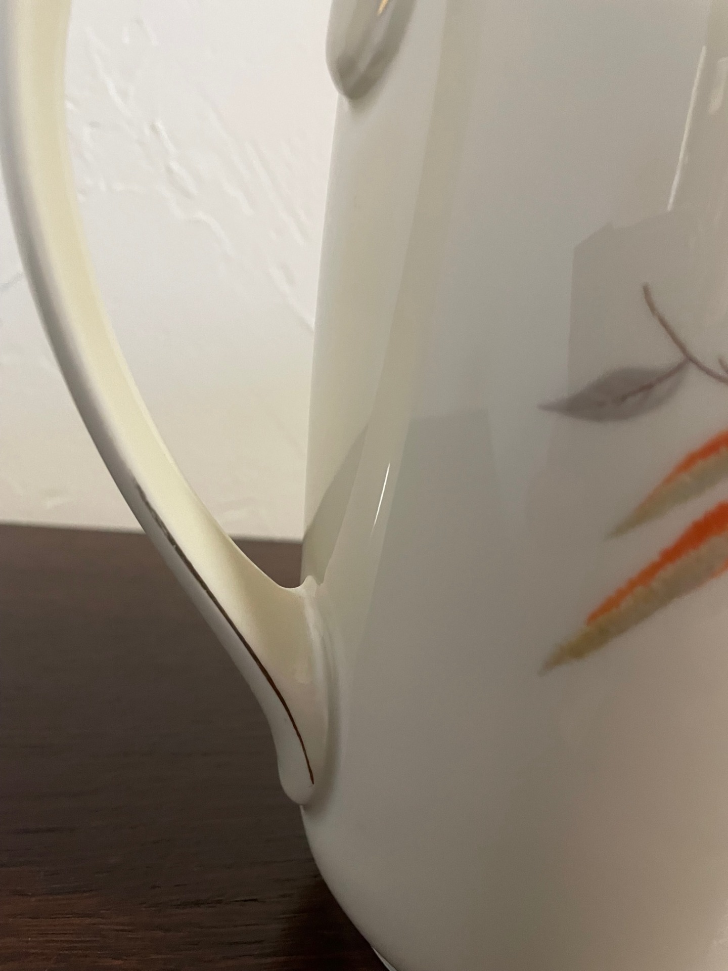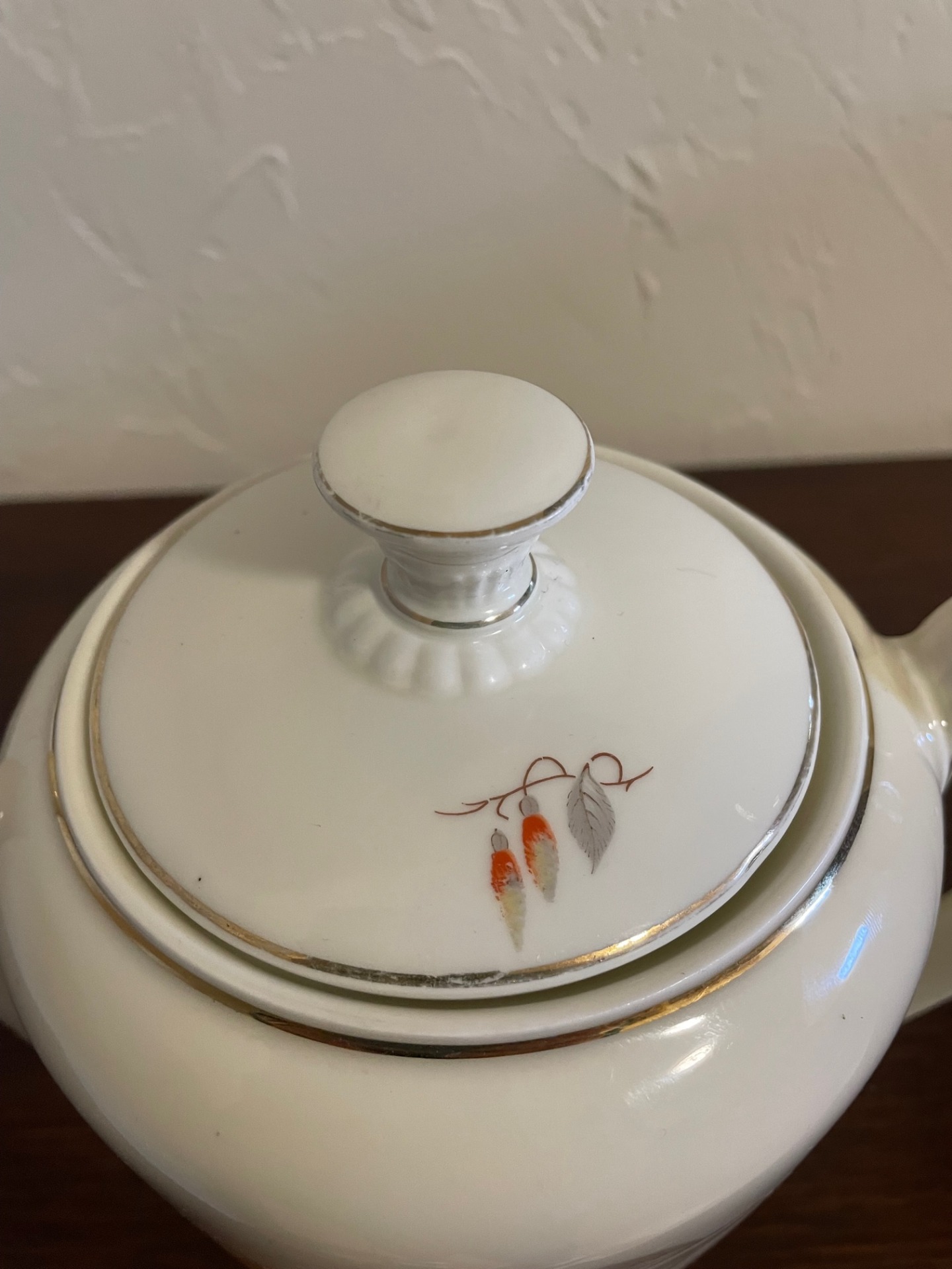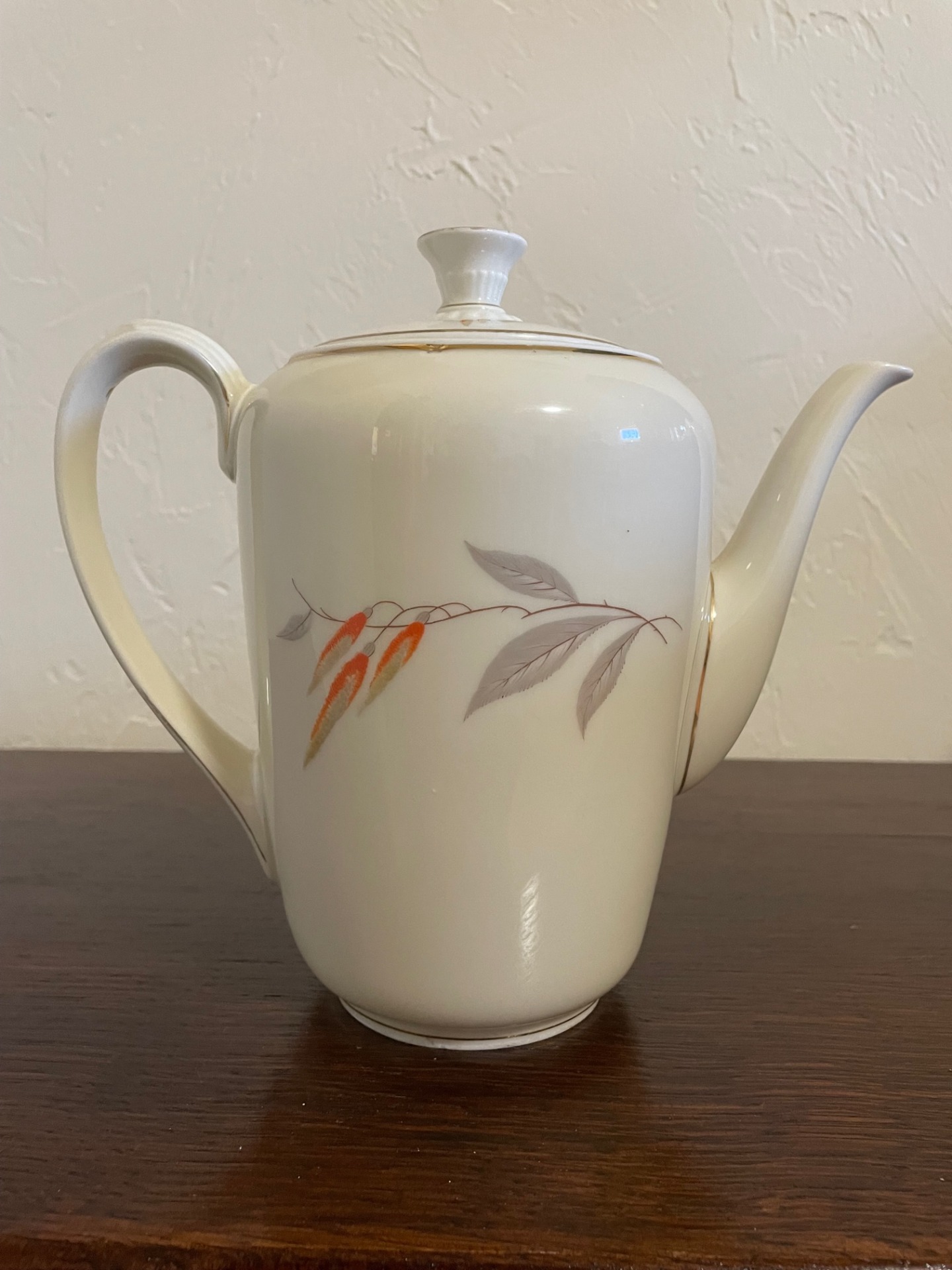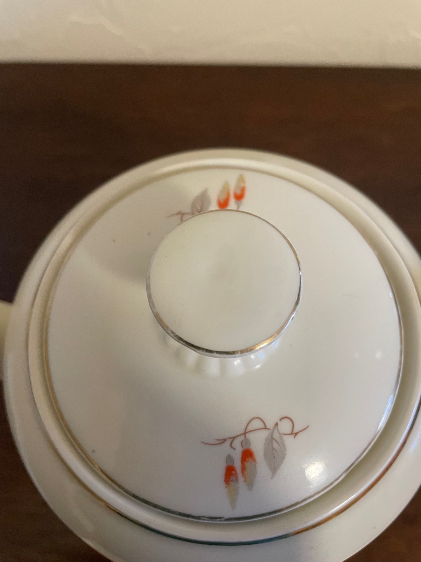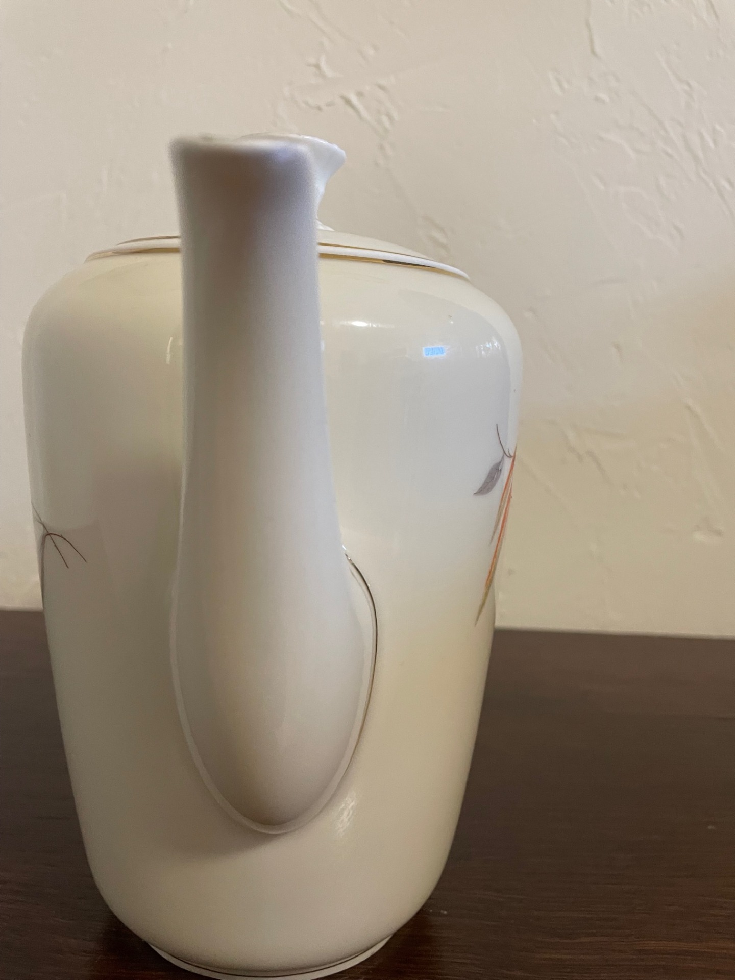 Krém színű alapon körbefutó paprikavirág díszíti ezt a Bavaria gyár fennállásának 50. évfordulójára készült teáskannát.