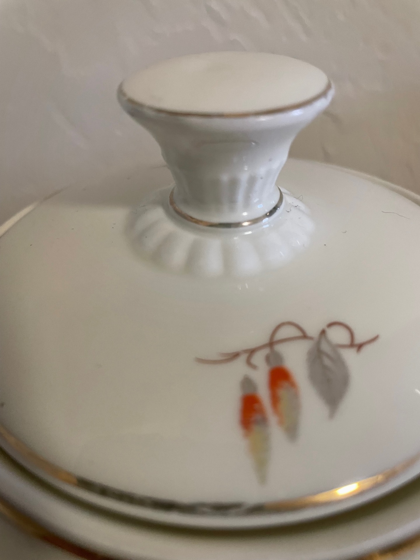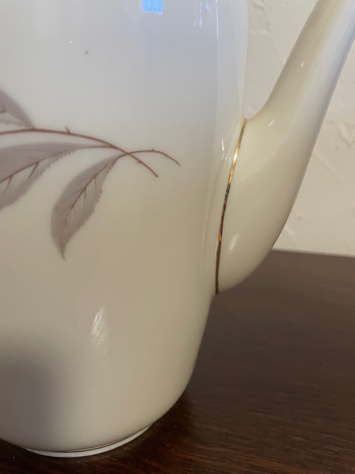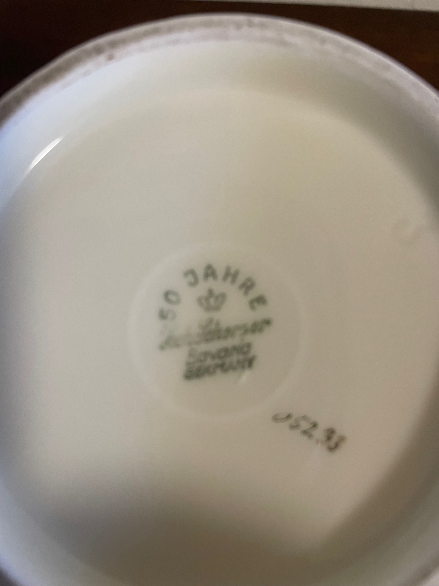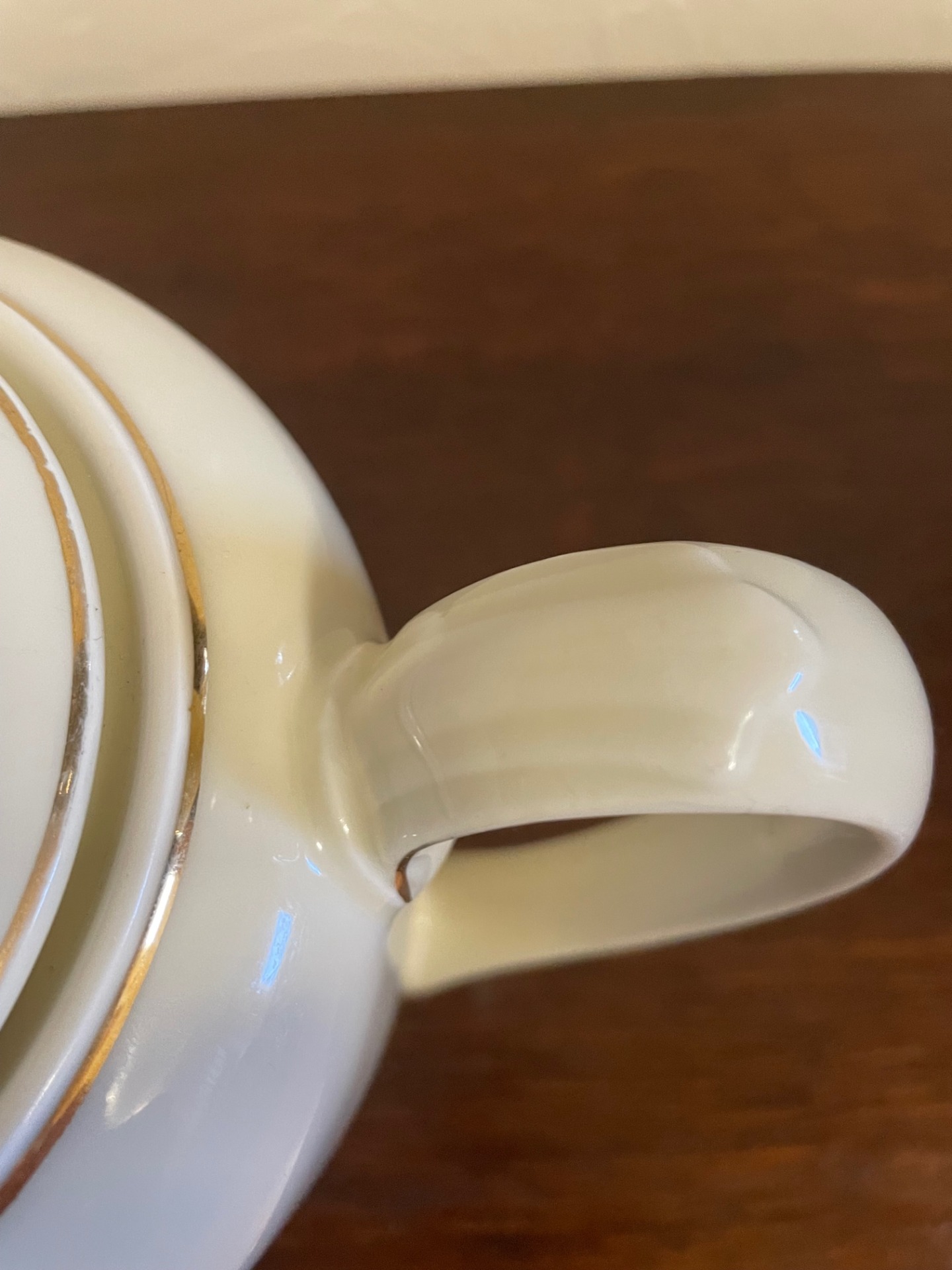Krém színű alapon körbefutó paprikavirág díszíti ezt a Bavaria gyár fennállásának 50. évfordulójára készült teáskannát.