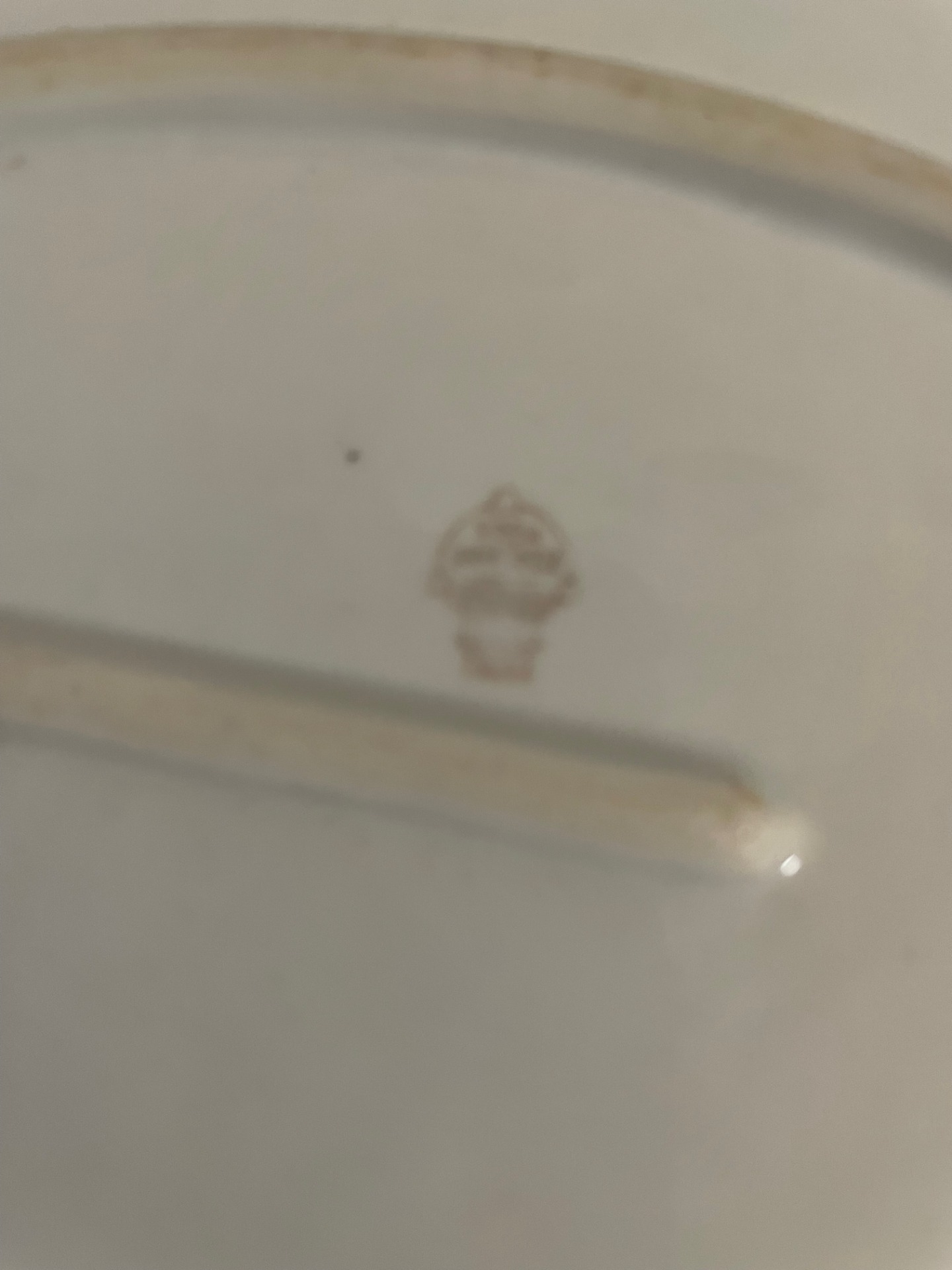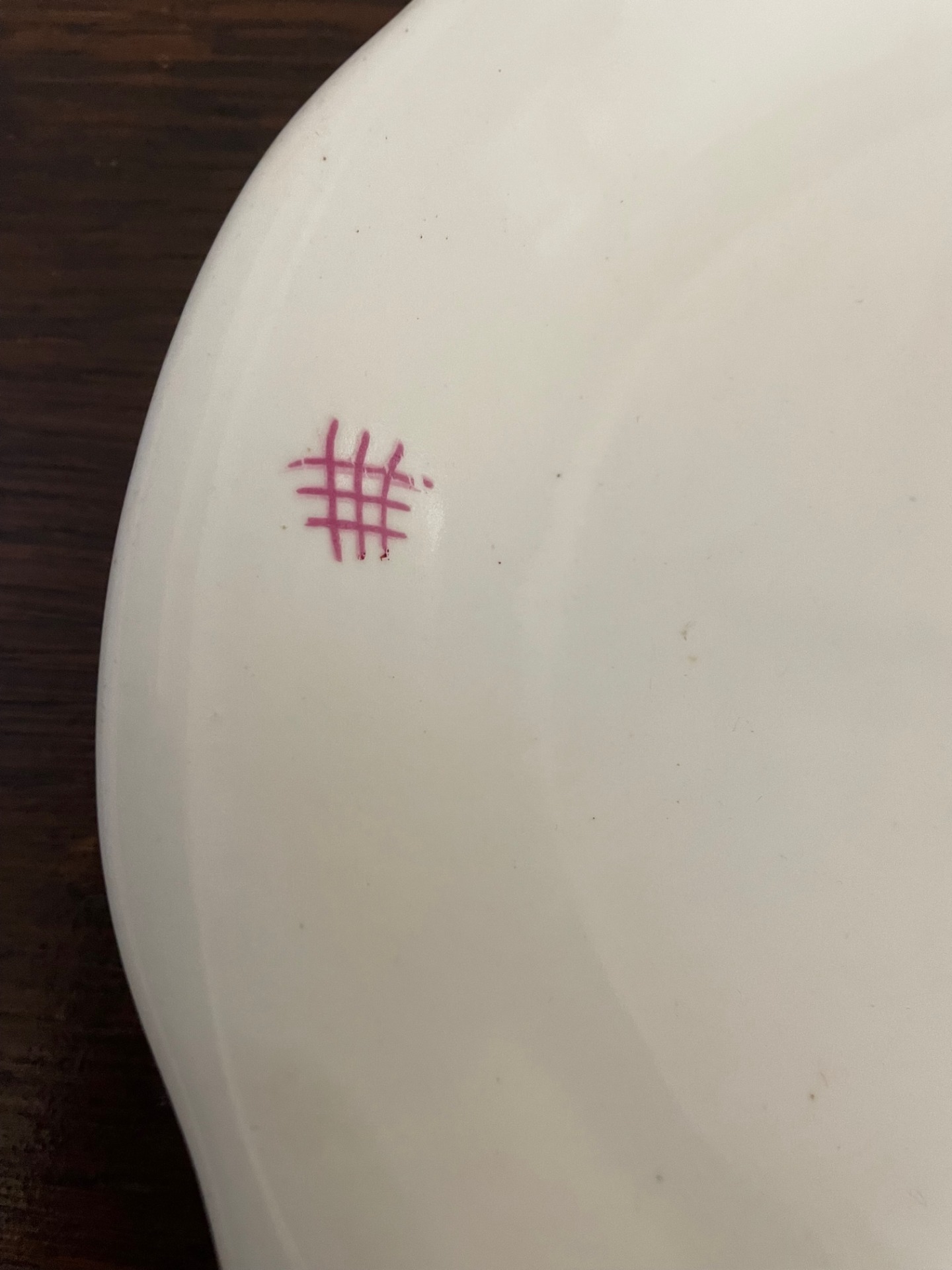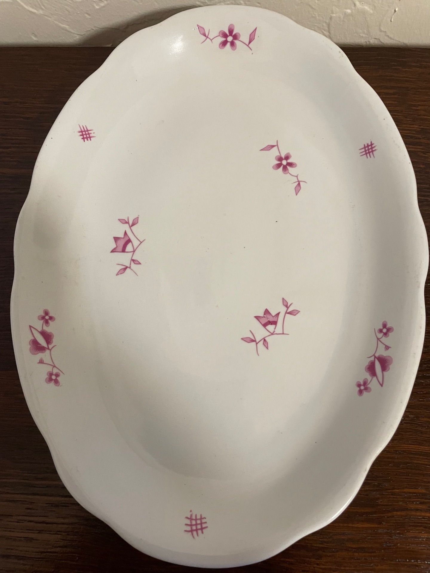 Zsolnay, hosszúkás kínáló, apró rózsaszín, ritka mintával.