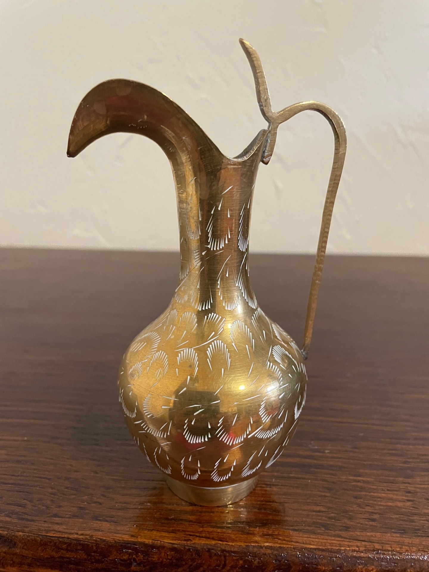 Sárgarézből, kézzel készült, eredeti indiai karaffa.