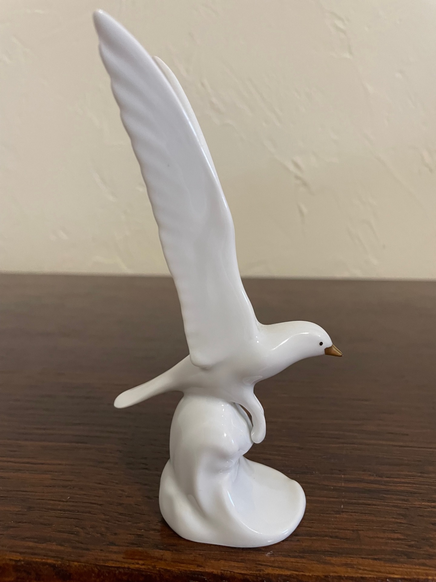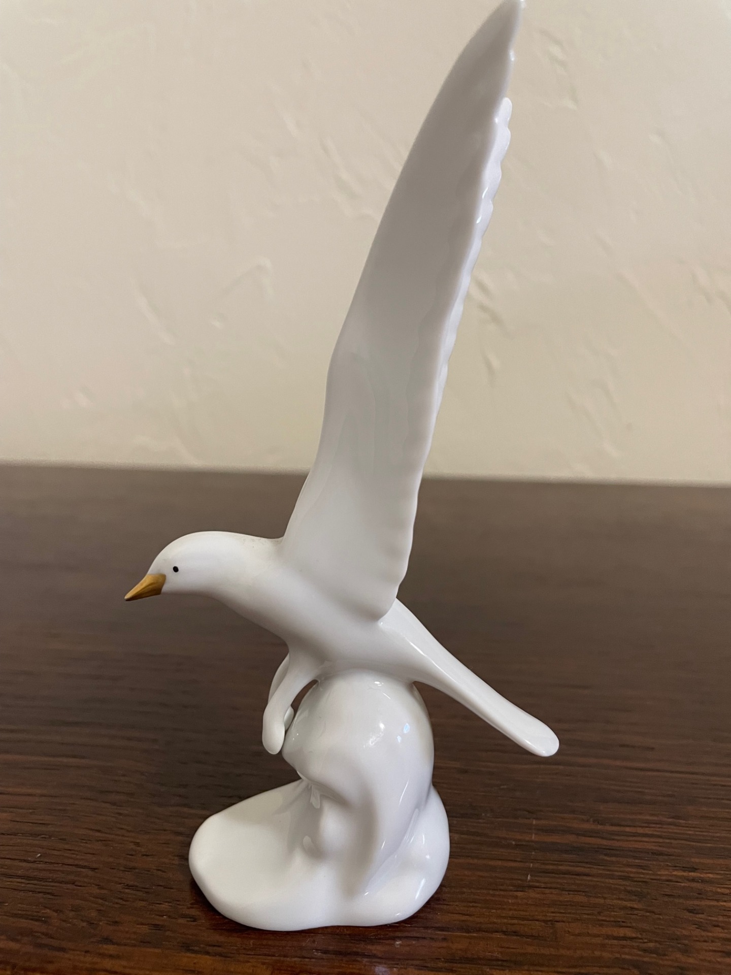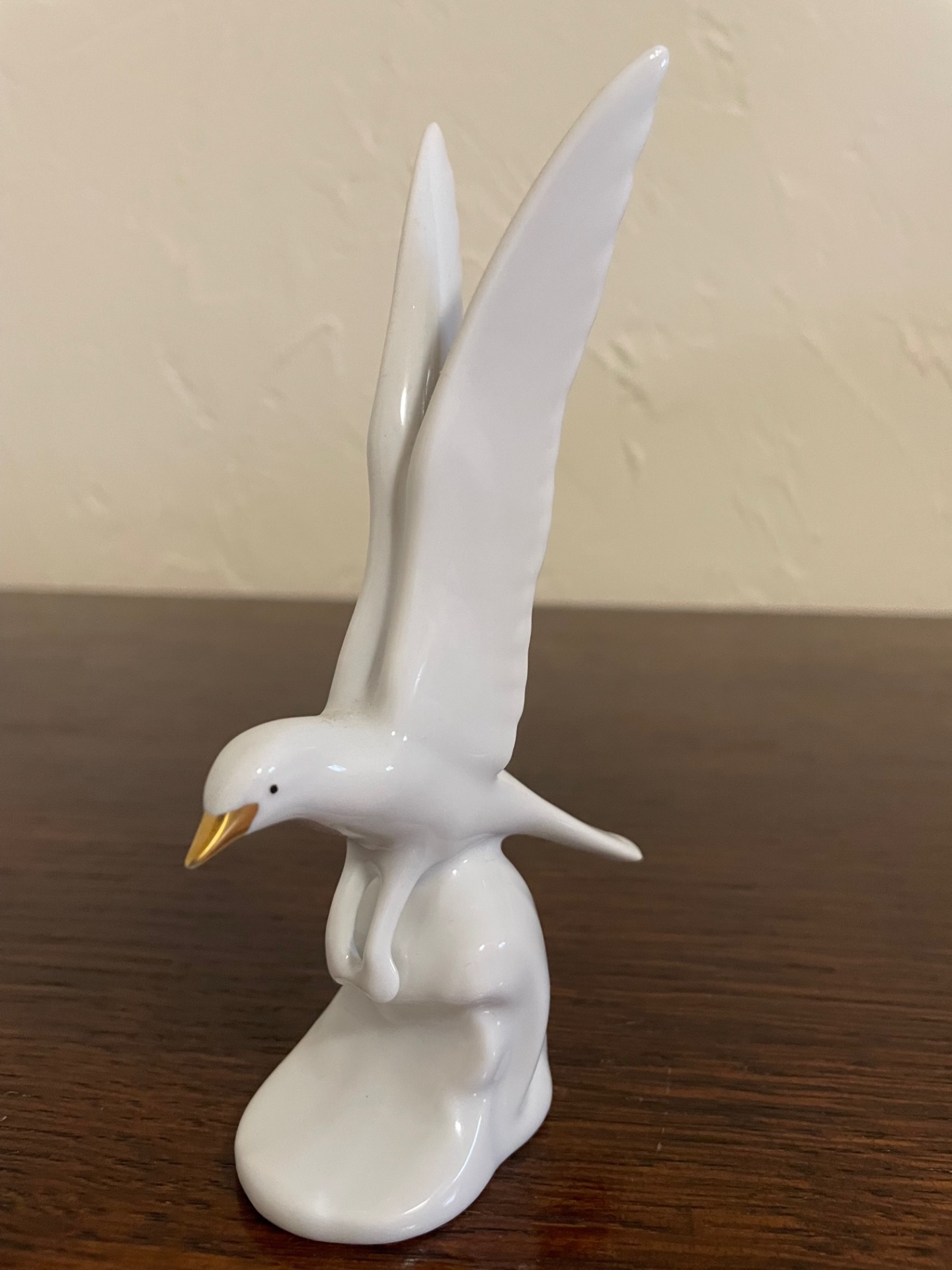 Ennek a sirálynak az ősét (apját) Bükki Béla Iparművész tervezte. Ő ennek a fia, 30 évvel később, arany csőrrel - szintén Hollóházáról.