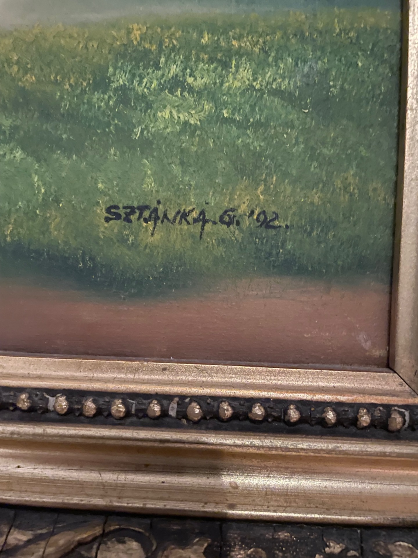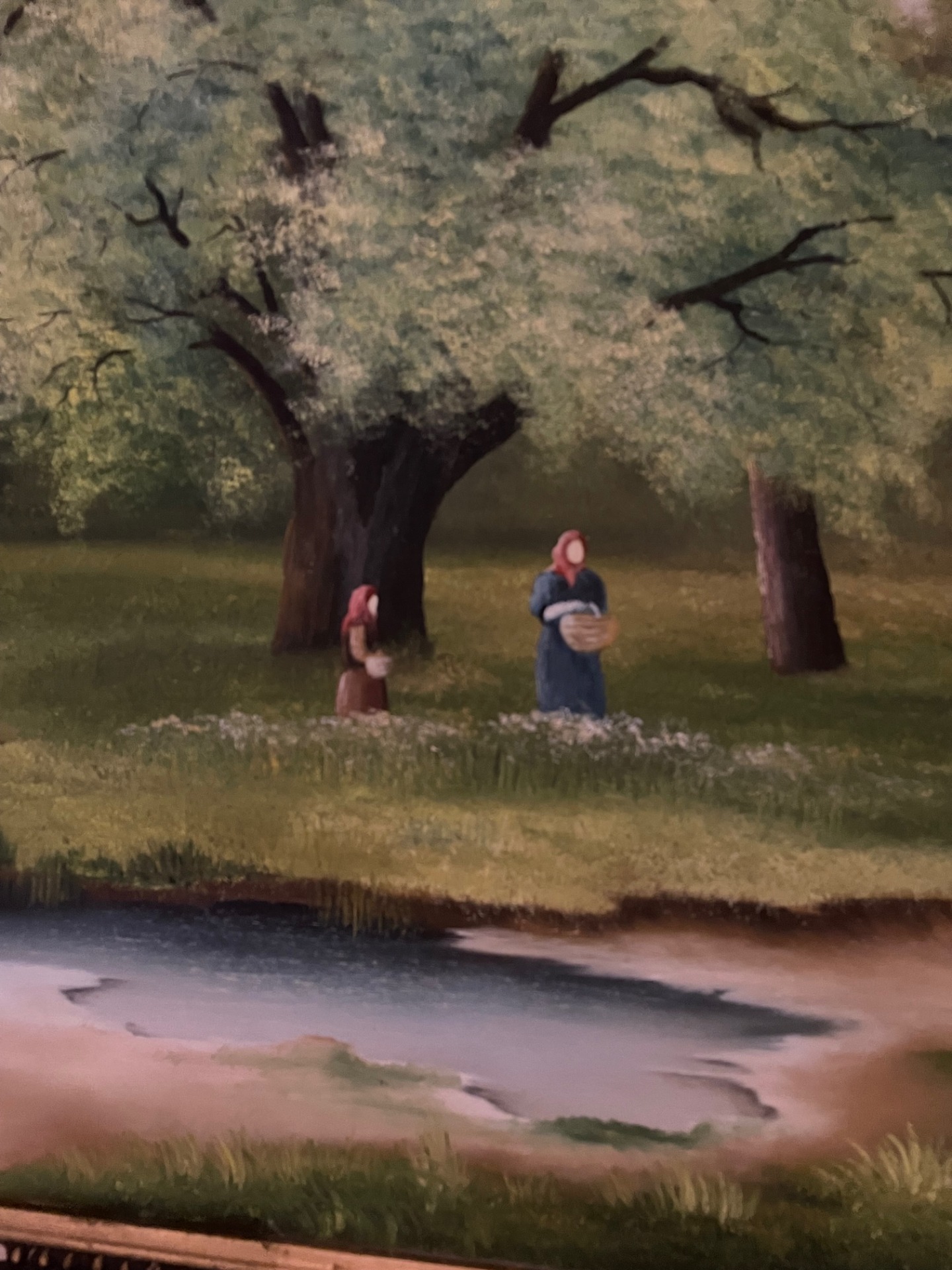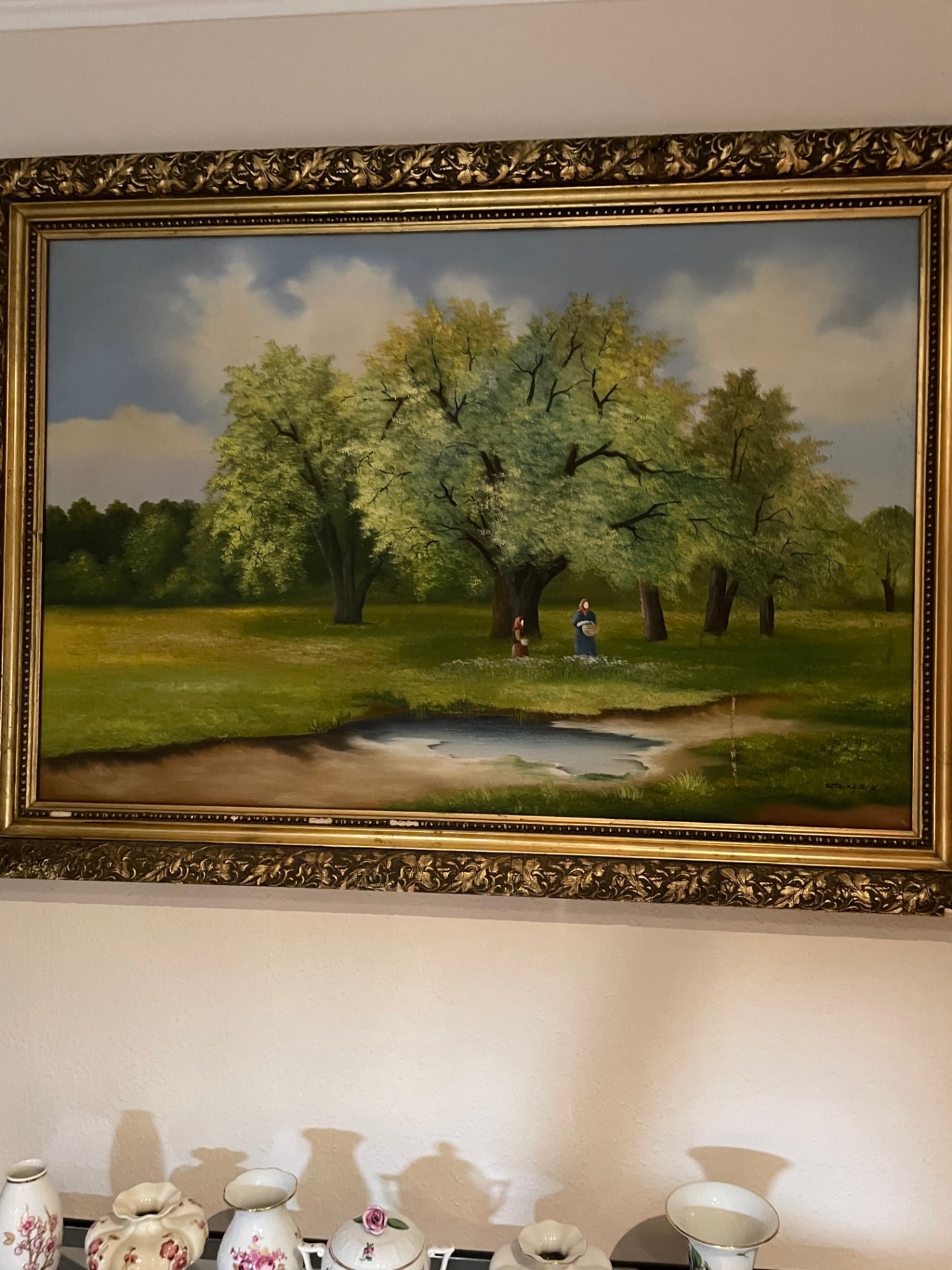 Sztánka G. : Gombát szedők c. olajfestmény, mely anyát és lányát ábrázolja, kis kosárkáikkal, erdős-ligetes környezetben.