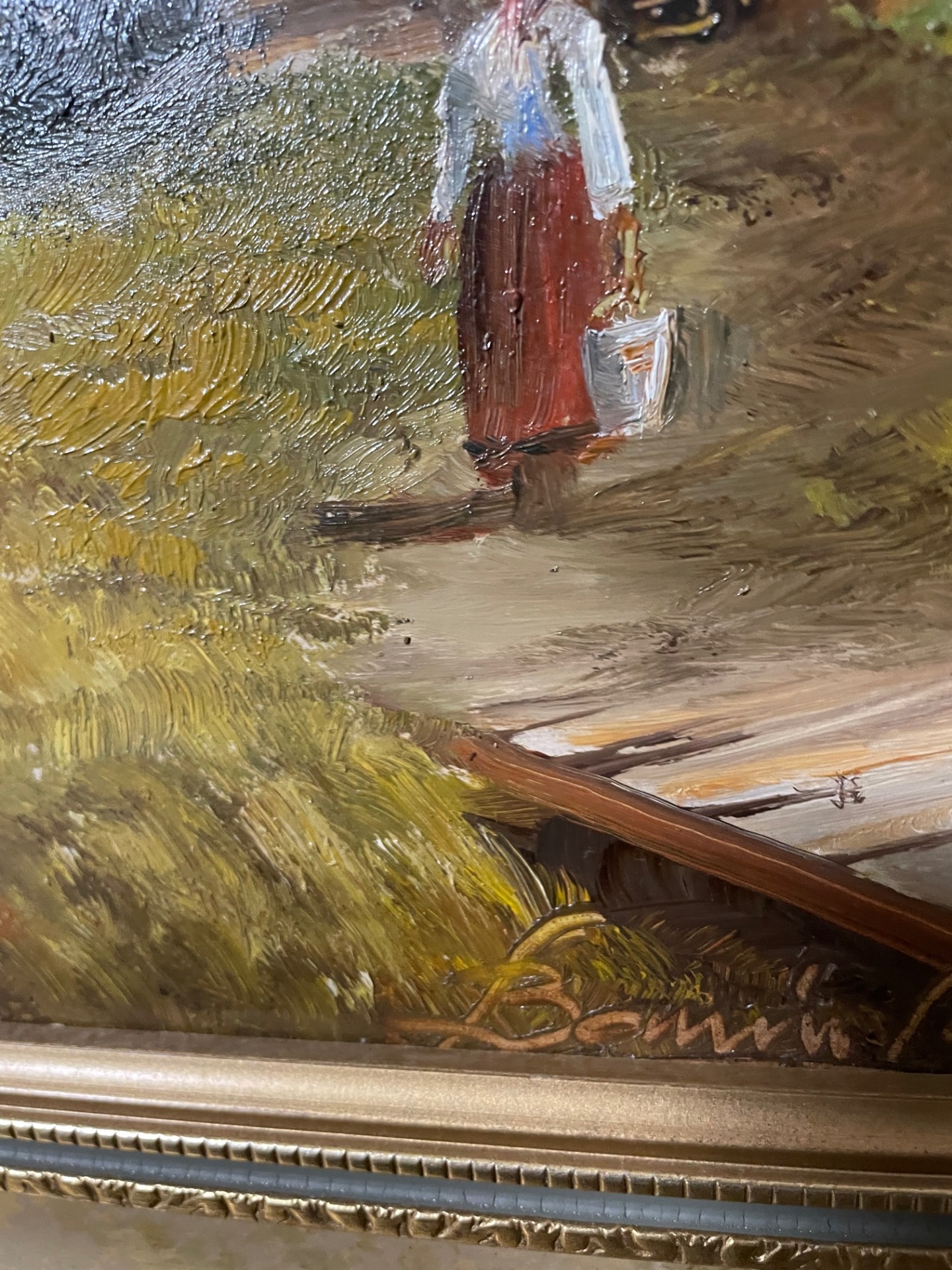 Számunkra ismeretlen festő olajfestménye. A festő szignója szerepel a festményen.