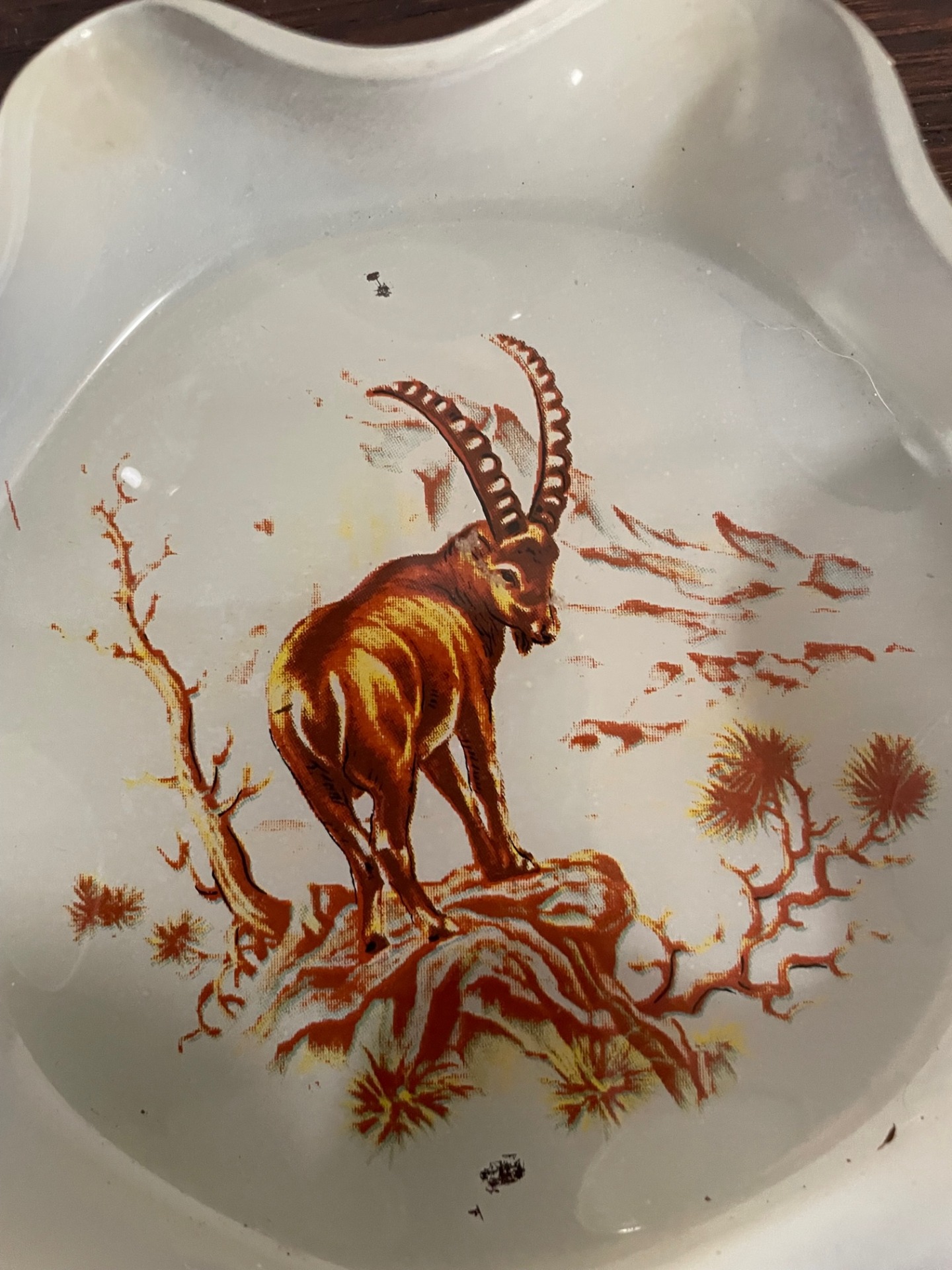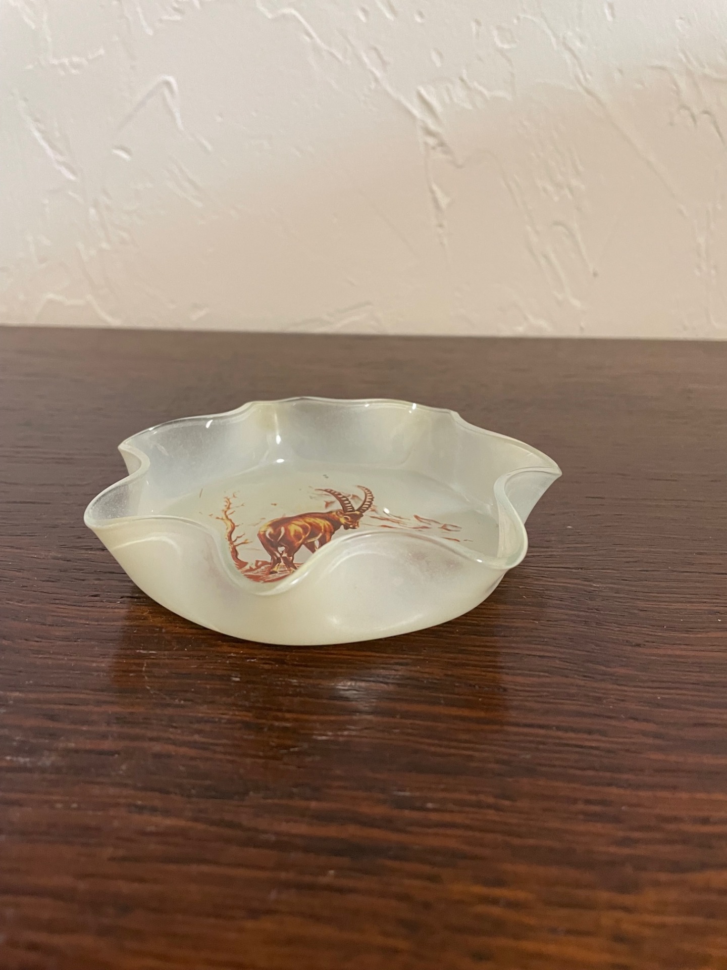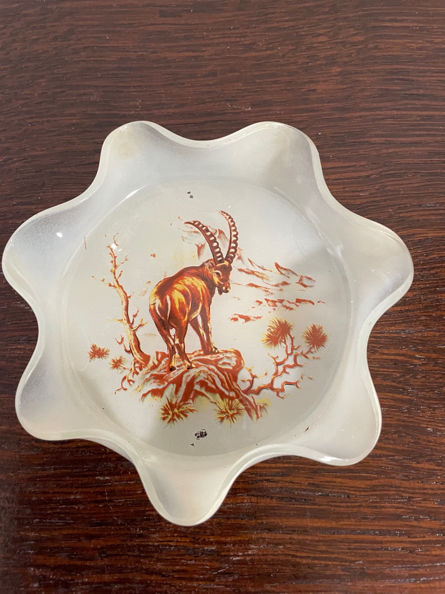 Vaddal díszített, üveg hamutál
