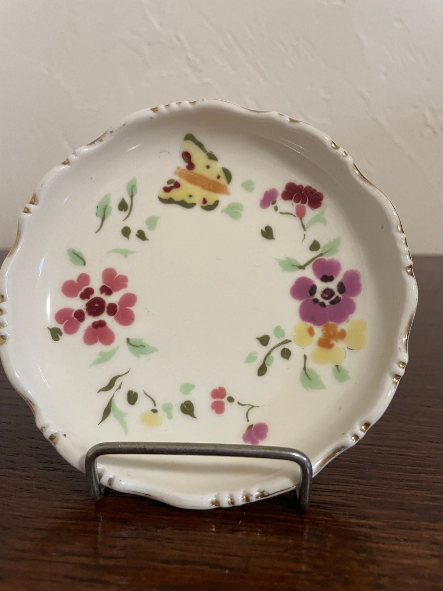 Tollazott, minimális arannyal díszített, pillangós hamutál a Zsolnay új korszakából. A porcelán nem fehér, hanem krémszínű.